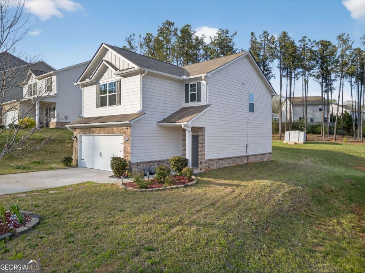 USDA ZERO DOWN LOAN ELIGIBLE!! Step into this beautiful Villa Rica home and feel the difference that newer construction, thoughtful upgrades, and a welcoming layout can make. Built in 2020, this home offers the peace of mind buyers love with a roof and major systems that are only 6 years old. The interior features an open and airy floor plan that makes everyday living feel easy, whether you are hosting friends, enjoying a quiet night in, or gathering around the kitchen at the end of the day. The kitchen is the heart of the home with granite countertops, stainless steel appliances, plenty of cabinet space, and a large island perfect for morning coffee, casual meals, or entertaining. Upstairs, the spacious bedrooms offer comfort and flexibility, while the primary suite provides a relaxing retreat to unwind. Outside, you will love having a storage shed for extra space and the added bonus of an owned solar power system, giving buyers energy efficiency without the added expense of a lease. Fiber internet is also available, making working from home or streaming a breeze. Located in a neighborhood with a playground and two pools, this home offers not just a place to live, but a lifestyle to enjoy.