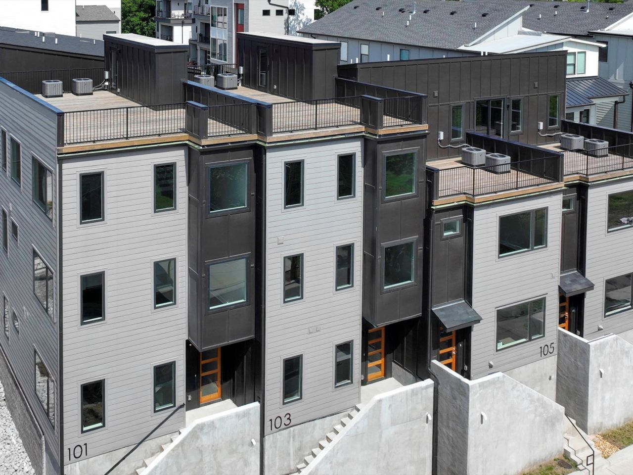 Opportunity to own one of twelve NOO-STR contemporary, elevated townhomes just minutes from downtown Nashville, offering sweeping city and elevated scenic views, including views of the new Tennessee Titans stadium. These 3-bedroom, 3.5-bath homes feature modern construction, open-concept living and private outdoor spaces designed to capture the skyline. End unit with 600 sf of rooftop deck. Assigned parking around back.NOO-STR zoning, allowing short-term rentals (Airbnb/Vrbo) with no owner-occupancy requirement - a true rarity this close to downtown and ideal for investors seeking appreciation and strong income potential. Bonus depreciation 2026 remains at 100% under current law. Airbnb bonus depreciation rules allow full first-year expensing for qualifying property acquired and placed in service after Jan 19, 2025 under the One Big Beautiful Bill Act through Cost Segregation study.Located directly up the street from the multi-billion-dollar River North development, Nashville's future waterfront district anchored by Oracle's headquarters campus, along with planned retail, dining, hotels, greenways, and riverfront amenities. This area is positioned for significant long-term appreciation as development continues along with all of the Dickerson Pike/Trinity Lane development.With limited supply, elevated positioning, city and horizon views, and unmatched zoning flexibility, these homes present a compelling opportunity for both immediate rental income and long-term upside. Buy now ahead of River North's full completion.Others for sale beside each other by same developer: 13A, B, C Fern Ave. 103, 105, 107 Elmhurst. 3, 5, 7, 9, 11 Fern Ave.