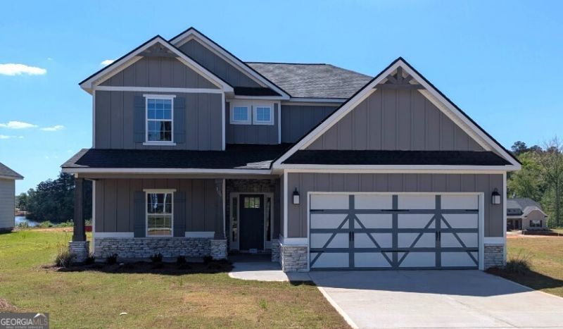 Discover Bryant Lake, a picturesque, tree-lined Hughston Homes community in beautiful LaGrange, Georgia, where natural beauty meets everyday convenience. This sought-after lakefront neighborhood features community sidewalks, tennis courts, a sparkling pool, playground, and clubhouse, designed for both relaxation and connection. Welcome home to the Ashley A Floorplan, a thoughtfully designed residence offering 2,481 sq. ft. of living space with 5 bedrooms and 3.5 baths. From the moment you enter, the impressive two-story foyer sets the tone for this inviting home. The spacious great room flows seamlessly into the kitchen and breakfast area and is highlighted by a cozy wood-burning fireplace, creating the perfect gathering space. The stunning kitchen is both stylish and functional, featuring soft-close cabinetry, recessed lighting, granite countertops, tiled backsplash, and stainless-steel appliances, including a gas range. A center island with a sink and integrated dishwasher makes meal prep effortless, while the pantry provides generous storage. Open sightlines keep the kitchen connected to the heart of the home. The owner's suite on the main level is a true retreat with elegant tray ceilings, a spa-like bath featuring a garden tub, tiled shower, double vanity, and an oversized walk-in closet. The owner's entry showcases Hughston Homes' signature drop zone with built-in cubbies, conveniently located near the laundry room, keeping life organized. A half bath on the main level adds guest-friendly convenience. Upstairs, enjoy a huge vaulted media room, perfect for movie nights or game days, along with four spacious bedrooms and a full bath, including a Jack-and-Jill bath shared by Bedrooms 2 and 4. Additional highlights include luxury vinyl plank flooring on the main level, a gas tankless water heater, 2 blinds on the front of the home, a two-car garage, and the signature Gameday Patio, complete with a wood-burning fireplace, ceiling fan, and outdoor speakers, ideal for entertaining or unwinding year-round. Tons of space. Tons of value. Come experience the lifestyle and comfort waiting for you at Bryant Lake, with easy access to the community pool, clubhouse, playground, and sidewalks.