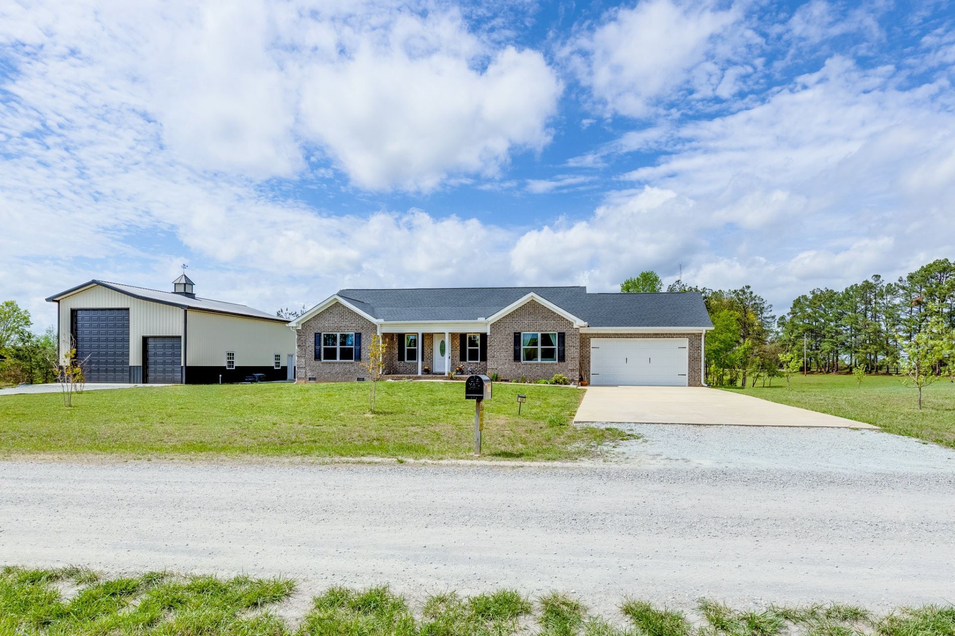 Welcome to this beautifully crafted brick home where style, comfort, and functionality come together effortlessly. From the moment you step inside, you're greeted with a bright, open-concept floor plan designed for both everyday living and effortless entertaining. The heart of the home is the stunning kitchen, featuring sleek gray cabinetry, gorgeous quartz countertops, and a spacious island with bar seating-perfect for morning coffee or gathering with friends and family. Even better, all kitchen appliances convey, along with the washer and dryer, making this home truly move-in ready. The thoughtfully designed split-bedroom layout offers privacy and relaxation, with the primary suite away from the additional bedrooms. Enjoy your own retreat, complete with a walk-in shower and a generously sized walk-in closet. Step outside to a covered back porch/deck, complete with a ramp for easy access-ideal for enjoying peaceful mornings or unwinding in the evenings. The partially fenced backyard offers the perfect balance of open space and security-great for pets, play, or simply enjoying the outdoors. Need space for hobbies, work, or storage? The impressive 50x30 detached shop is a standout feature, offering both a 10 ft and 16 ft roll-up door, insulation, water access, and a 30-amp plug-ready for all your projects or equipment. With an attached garage, modern finishes, and exceptional extras, this property offers the perfect blend of comfort, convenience, and versatility. Don't miss your chance to call this one home!
