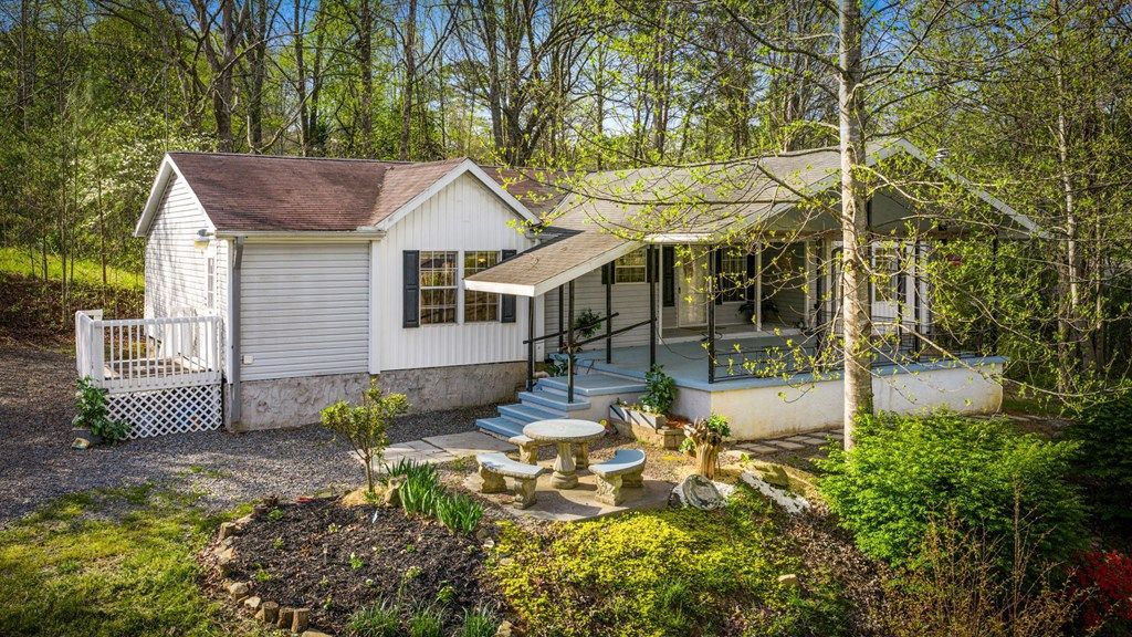 Tucked away on a private 0.85-acre wooded lot in the North Georgia mountains, this charming 3-bedroom, 2-bath home offers the perfect blend of privacy and convenience?just 10 minutes from downtown Blue Ridge. Enjoy easy access to shopping, dining, and outdoor recreation while still having your own peaceful retreat. Inside, you'll find a functional single-level layout with durable wood-look laminate flooring throughout the main living areas. The cozy living room features a beautiful stacked stone gas log fireplace, creating a warm and inviting focal point. The kitchen offers ample cabinet space and includes an electric range, making it both practical and efficient for everyday living. Step outside to the covered front porch?perfect for relaxing and taking in the natural surroundings. The generous acreage provides room to enjoy the outdoors, add personal touches, or simply take in the quiet mountain setting. Additional features include central heating and air, public water, and a septic system. Located in Forge Mill Estates with convenient access to Hwy 515, this home combines mountain living with everyday convenience.