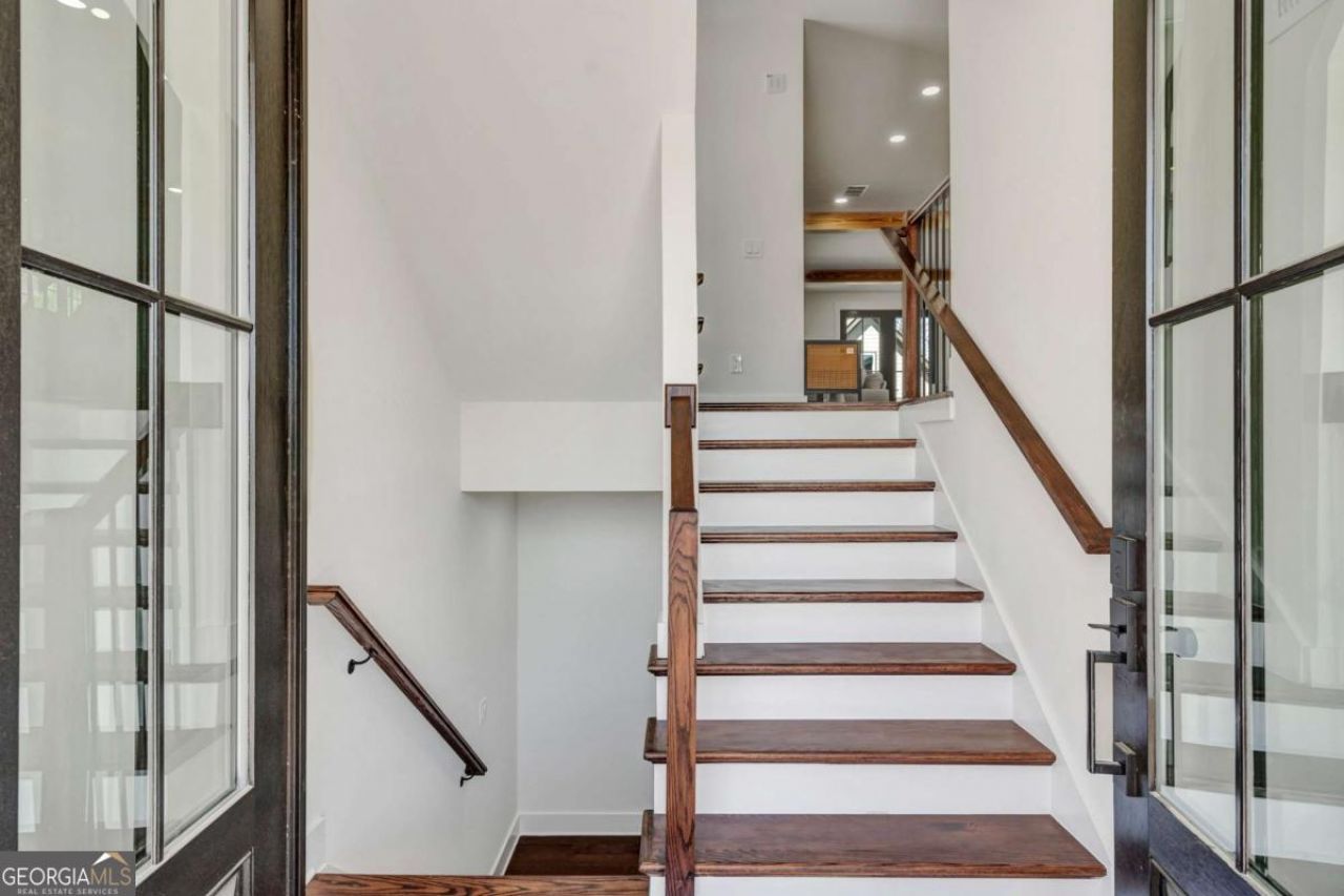 Defined by its bold architecture and refined presence, this stunning 4-Bedroom, 3.5 Bath residence offers over 2869 square feet and makes an unforgettable first impression with it's dramatic Iron Ore exterior - a rich, sophisticated black that exudes modern elegance and timeless curb appeal. Inside, elevated finishes and thoughtful design define every level of the home. The heart of the main living space is a beautifully appointed kitchen featuring a 36-inch stainless steel five-burner gas cooktop with five burners, cabinet-matched hood, and a sleek stainless steel wall oven with microwave above and soft-close cabintry throughout - blending performance with polished style. A large walk-in pantry offers abundant storage, while the adjacent office/flex room provides the perfect private workspace. A powder room and inviting front porch complete this level. Upstairs, the layout is designed for comfort and privacy. The primary suite features a large walk-in closet and a well-appointed ensuite bath. Two additional bedrooms-each offering generous space and their own walk-in closets, with easy access to a full secondary bath. A conveniently located upper-level laundry room adds everyday practicality. The terrace level welcomes guests with a spacious guest suite/bonus room, complete with its own full bathroom and dual walk-in closets. This level also includes a dedicated laundry area, additional closet storage, and conveinient access to the oversized garage. Double doors lead to a large covered patio, making this level ideal for multigenerational living, and in-law suite, teen retreat, or private home office with its own outdoor entry. Outdoor living space extends your lifestyle beyond the walls, providing the perfect setting for morning coffee evening gatherings, or simply enjoying the surroundings in privacy anyd comfort. With three fully finished levels, this home offers flexibility for today's lifestyle - whether you envision a private guest retreat, home office, media space or multi-generational living. Ready for you today, this home presents a rare opportunity to live so close to everything in downtown Ball Ground. We look forward to exploring your next move.