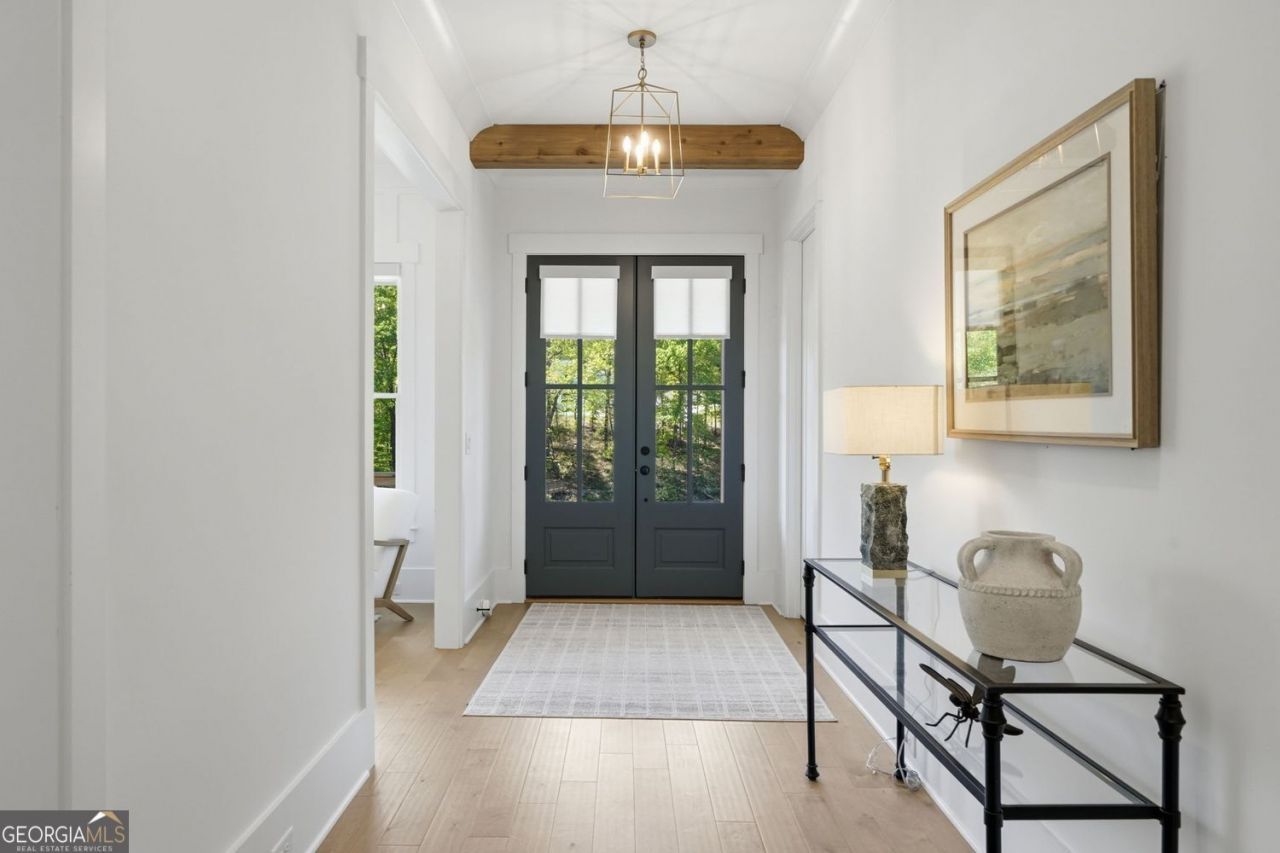 Tucked inside the gated community of Malone's Pond, this nearly new Bercher Homes build offers a rare opportunity to own a thoughtfully upgraded home in one of Ball Ground's most charming settings. Set on a premier, nearly half-acre lot overlooking the neighborhood pond, the backdrop here is something special-peaceful water views, wooded privacy, and frequent wildlife sightings, all just moments from the energy of downtown Ball Ground. With its walkable access to the city park, trails, tennis courts, and year-round community events, this location strikes a unique balance between quiet, nature-filled living and an active small-town lifestyle.Built in 2024 and spanning over 3,700 square feet, this five-bedroom, five-and-a-half-bath home was designed with both everyday comfort and elevated entertaining in mind. The owners took an already strong builder plan and enhanced it in all the right ways, adding a main-level bedroom with a private ensuite bath along with a dedicated dining room that gives the home a more complete and functional layout. Natural light pours in from an abundance of windows, framing views of the pond and surrounding trees and creating a bright, open feel throughout the home.The kitchen is both beautiful and practical, anchored by a spacious main area and complemented by a separate scullery kitchen that keeps prep work and cleanup tucked away. From there, the home flows seamlessly into the main living spaces with fireplace and out to the enclosed back patio, where a screened-in design creates a comfortable extension of the home year-round.What truly sets this property apart is the level of finish and care that has gone into it since completion. The sellers have invested over $60,000 in upgrades, including hardwood floors throughout, custom window treatments, an enhanced appliance package, painted and sealed garage floors, a full home water filtration system, and a professionally installed irrigation system. The landscaping has been thoughtfully upgraded to complement the setting, and every detail reflects a home that has been meticulously maintained and intentionally improved.Additional highlights include a three-car garage and an oversized driveway with plenty of room for guests, along with one of the neighborhood's best slab lots, which offers both usability and commanding views. For buyers who appreciate the look and feel of a model home but don't want to wait through the building process, this is a standout opportunity. Every finish has already been selected, every upgrade has already been completed, and the result is a home that feels both refined and truly move-in ready in one of North Georgia's most inviting communities.