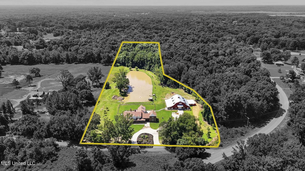 MODERN FARMHOUSE ESTATE ONLY 3 YEARS OLD! on 10 acres in Lewisburg school district! Bring your horses and enjoy the best of fine DeSoto County living in a country setting. House is 7,108 s.f. of finest finishes, 4BR, 4 Full and 3 half baths, bonus room, 2 large offices, art gallery, kitchen, dining room great room, sunroom, safe room and 4 car garage. THREE stairwells! 10 ft. ceilings down, 9 ft up, 6 Heat/air units. BARN is 5250 s.f. with 1 BR, 2BA, office, laundry room & kitchen/greatroom combo, and a shop area, indoor sport area, office, and 3 overhead doors for loading your equipment. Enjoy the large pond with grain fed fish, ducks, and lights and sprayers. There is a gazebo, covered fishing doc, and windmill that pumps air into the pond. Lawn has irrigation system too. Just minutes from Germantown or the Memphis airport.