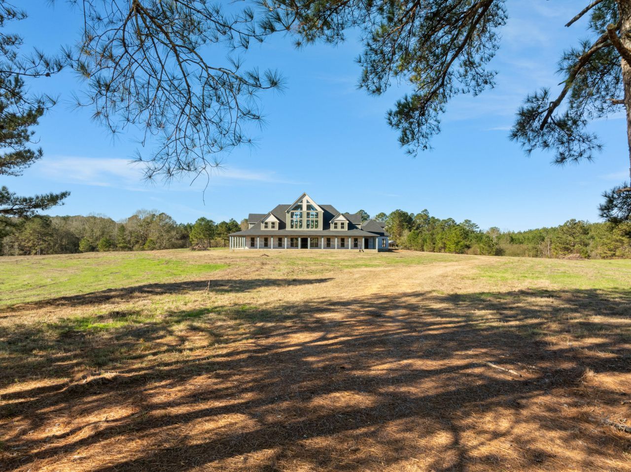 An exceptional opportunity to bring a grand vision to life. This unfinished residence offers approximately 8,000 square feet of heated and cooled space, thoughtfully designed and ready for completion. Perched on a hilltop, the home overlooks 65 scenic acres and a private pond, delivering breathtaking views and a true sense of privacy.The structure features 8 bedrooms and 6 full bathrooms, including a primary suite with a built-in safe room/storm shelter. Architectural highlights include multiple staircases, soaring ceilings, and walls of oversized windows that flood the interior with natural light and frame the surrounding landscape.The home is framed and dried in, with plumbing and electrical already run (not yet connected), providing a strong head start for the next owner. An expansive covered porch wraps around much of the home, creating ideal spaces for outdoor living and entertaining while taking in the peaceful views.Whether you're an investor, builder, or experienced renovator, this property presents a rare chance to complete a one-of-a-kind estate exactly to your specifications in a stunning setting.*Some images are conceptual renderings provided to help illustrate the home's potential once completed.