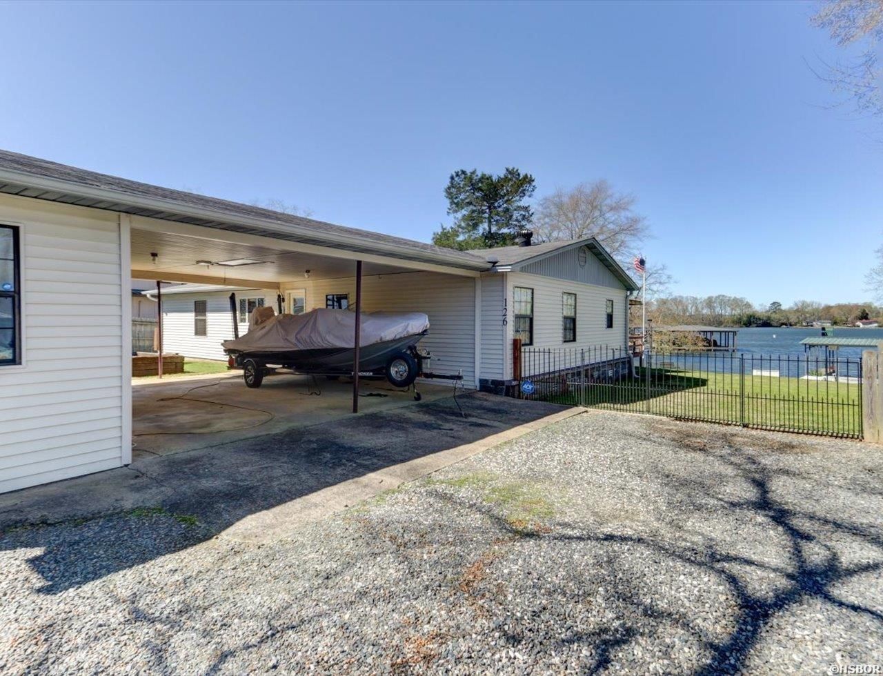 Lakefront Living Meets Total Utility: Interior: Knotty Pine finished 3BR/2BA + updated kitchen with oversized island. The "Bonus": Huge multi-purpose room with wall of windows facing the lake and a private half bath. And, back yard is fenced, has covered deck, covered deck and custom fire ring for nights outside by the lake. For the Toys: Covered dock, double carport, and RV parking (electric) and storage shed. The Shop: Climate-controlled storage/equipment building with power. Community: Private subdivision boat launch for easy water access. Now accepting back up offers.