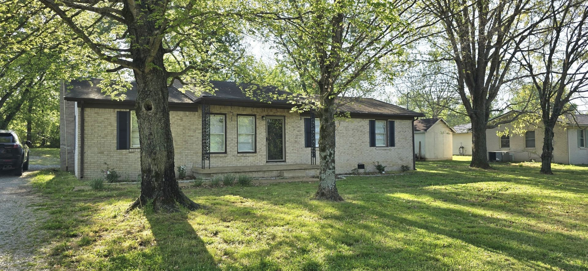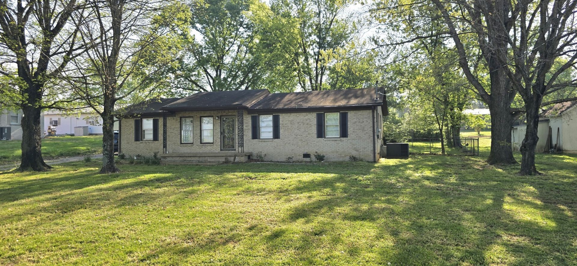 All brick, one level home with attached garage and storage shed. 3 bedrooms. 1.5 bath. Original hardwood floors and large private yard. Close to the bypass and Campbell Lake.