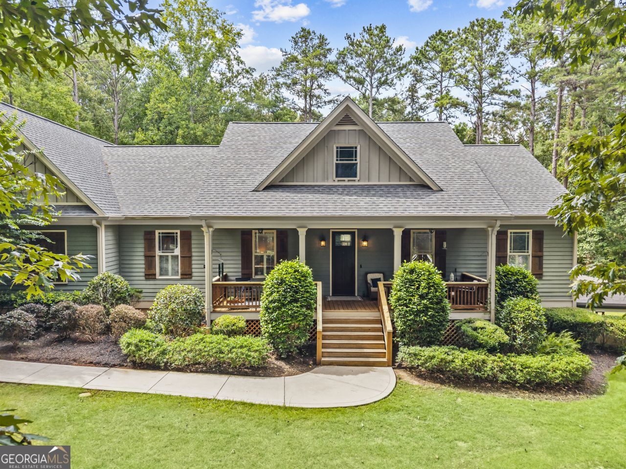 You will love the location of this fabulous One-and-A-Half home, situated in the Phoenix Lake neighborhood, just off Old Phoenix Road. It has a finished terrace level and an unfinished upper level. It is convenient to shopping and restaurants. There is also a community boat ramp for access to Lake Oconee which gives you access to the main part of the lake and is close to the Sunset Marina for fuel. This home sits on a big 1.35-acre lot and has two driveways for plenty of parking. One end of the house has a covered parking structure perfect for storing your boat or extra vehicles. The side-entry garage holds 2 more cars. The front porch welcomes you into the home. Inside this home, you will find a lovely floor plan with a split bedroom setup. The secondary bedrooms can be closed off to the main living area as well. The stacked stone fireplace in the great room anchors the space with beautiful stacked stone and custom bookcases on either side. The warm, rich hardwood floors run through this entire area where the kitchen, dining room, and great room come together for the perfect space to entertain friends and family. You can throw open the French doors to the covered screened porch to expand out into the open back yard overlooking the pool. The pool is perfect for hot summer days to sunbathe, cool off, and enjoy summer-time cocktails. The hot tub is perfect for relaxing after a long day's work. The large master suite is light. bright and sunny. The master bath has a large vanity with double bowls, a soaking tub, and a separate shower, plus a very large walk-in closet. The full finished basement has the coolest bar and game room, perfect for celebrations, game nights, or just get small togethers.. Don't miss the home theater room where lots of friends can gather for movie nights with ample seating for chairs or sofas. For those prized possessions, there is a vault room also on this level. The finished terrace level is about 1400 square feet finished on top of the 2068 of the main level for a total heated and cooled square footage of approximately 3468 square feet. Then there is an area that is unfinished that has a garage door perfect for storing your boats and other toys. Or it can be used for a workshop as well. There is a whole unfinished second floor about the same square footage as the main level. Rough plumbing is also in place for a bath or kitchen. There is also an exterior entrance to this area. So if you need more space, this area will be perfect for adding more bedrooms or a studio. The HOA is strictly voluntary and only $100 per year for lake access at the community ramp and use of the day-use dock. This will be a great investment with the neighboring lakefront properties pushing up into the million-dollar values. This is one of the largest off-water homes in this development. Enjoy the large lot that gives you plenty of privacy to enjoy the party pool with the bar and stools at the water's edge. How cool is that? You will love the stylish black iron fence around the pool area that will keep the furry family members safe while everyone is enjoying the pool and firepit.