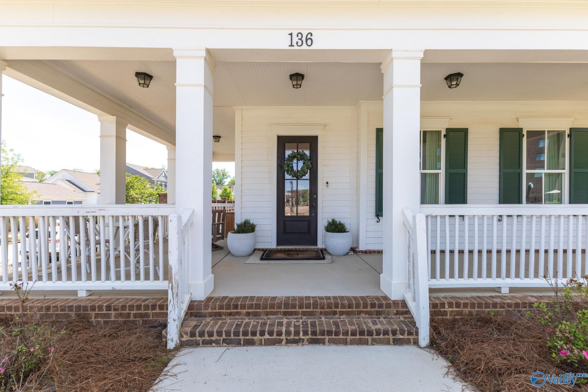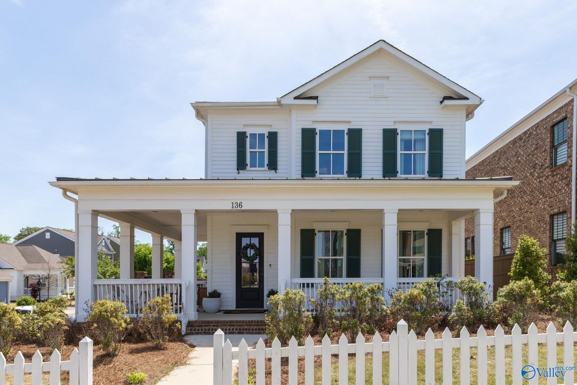 136 Bourbon Aly is an upgraded home on a corner lot in a prime Madison location with quick access to I-565 and Huntsville amenities. Zoned for Discovery Middle and Bob Jones High School. Features include a wrap-around front porch overlooking green space, screened-in rear porch, and a functional floor plan with upgrades such as wallpaper, stair runner, built-ins, updated lighting, and window treatments. Spray foam insulation provides low utility costs and a clean, temperature-controlled attic. Move-in ready with strong location, upgrades, and efficiency.
