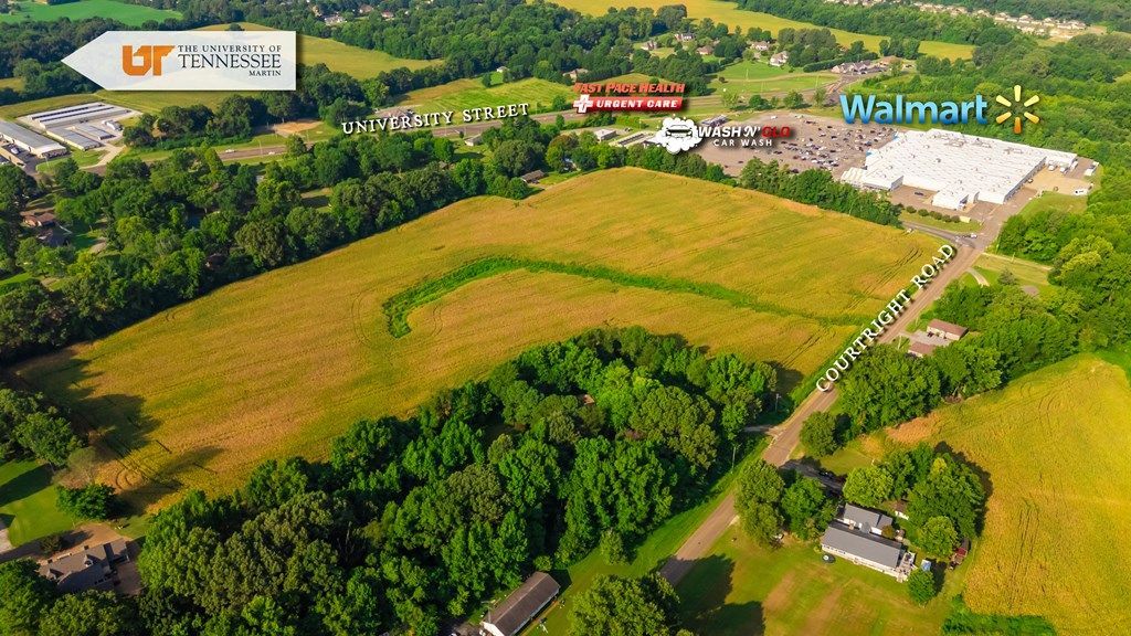 Prime development opportunity in the heart of Martin, TN! This 28+/- acre tract is ideally located right next to Walmart and just minutes from the University of Tennessee at Martin, shopping, dining, and other city amenities. With road frontage and utilities nearby, this property offers endless potential! Currently zoned (R1), sellers willing to wait for rezoning contingency. Don't miss your chance to invest in one of Martin's most sought-after locations!