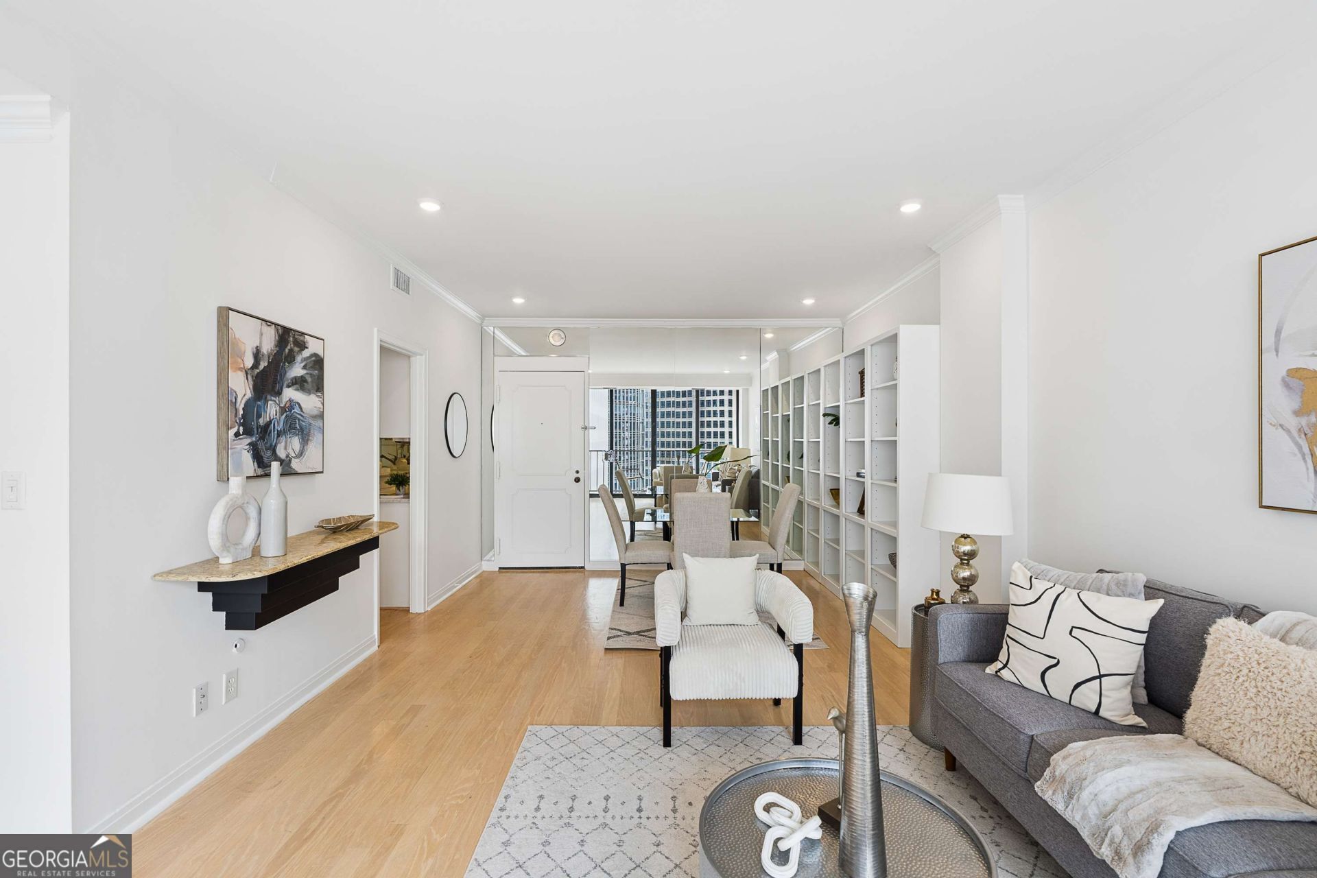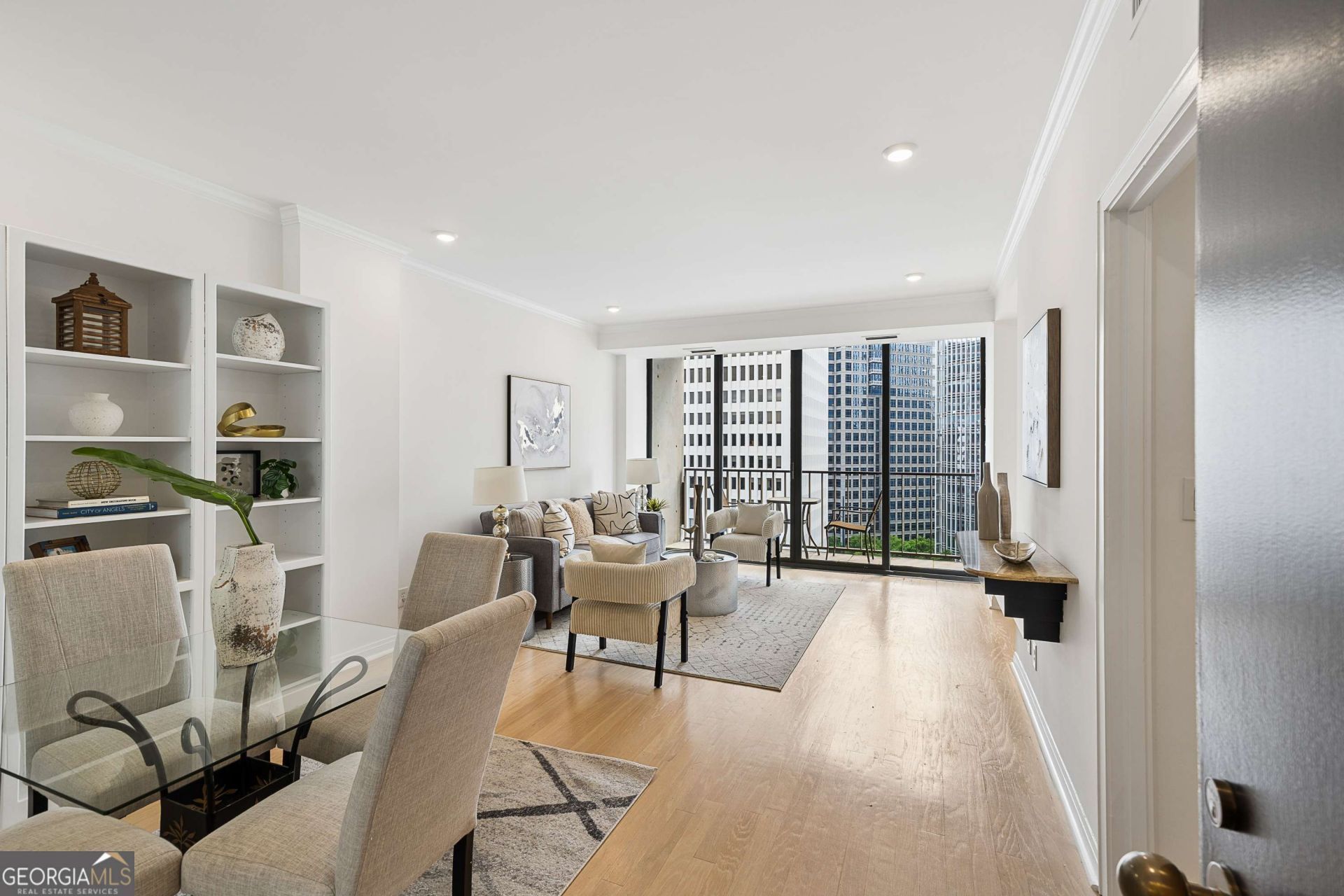 Welcome to your urban oasis on the 14th floor of the iconic Colony House! This 1BR/1BA condo offers sweeping views from Midtown to Downtown Atlanta, thanks to floor-to-ceiling windows that fill the space with natural light. Step onto your private balcony and soak in panoramic cityscapes, or relax indoors where style meets functionality. The open living area with granite buffet, custom shelving, and updated kitchen with sleek marble countertops and backsplash make this condo a dream for both entertaining and daily living. The beautifully updated bath features quartz countertops, custom tile work and a built-in closet for extra storage. Designed by the renowned Jova/Daniels/Busby firm, Colony House is a landmark in Atlanta's architectural history, and living here means you're part of that legacy. With 24-hour concierge service, secure parking, and all-inclusive utilities, convenience is at your fingertips. Enjoy Colony Square's top-tier shopping and dining or stroll to nearby destinations like the High Museum, Piedmont Park, and the BeltLine. Embrace city living at its finest in this Midtown masterpiece! There are no rentals allowed in Colony House.