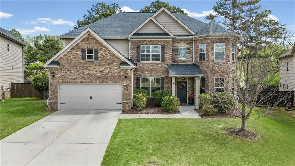 2 PRIMARY BEDROOM SUITES. Stunning, thoughtfully updated home offering 5 bedrooms and 5 baths, designed with both comfort and flexibility in mind. This spacious layout features two primary suites?one conveniently located on the main floor and another upstairs?perfect for multi-generational living or added privacy.The main level boasts two full bathrooms, a dedicated office space, and beautifully updated flooring and fresh paint throughout, creating a bright and modern feel. The downstairs primary suite is a true retreat, complete with its own private HVAC system for personalized comfort.Upstairs, you'll find a versatile loft area ideal for a second living space, media room, or playroom. The home also features a newly renovated guest bath on the main floor with stylish tile upgrades.The kitchen shines with brand-new appliances, ready for everyday living and entertaining. The living room fireplace has been tastefully updated with a clean, bricked finish, adding character and charm.Step outside to enjoy the newly added covered patio overlooking a huge backyard filled with mature trees and a peaceful lake view?perfect for relaxing or hosting parties.No detail has been overlooked in this exceptional home. Scenic Lake/Creek behind the home flows into Big Creek then into the Chattahoochee - so no mosquito worries.