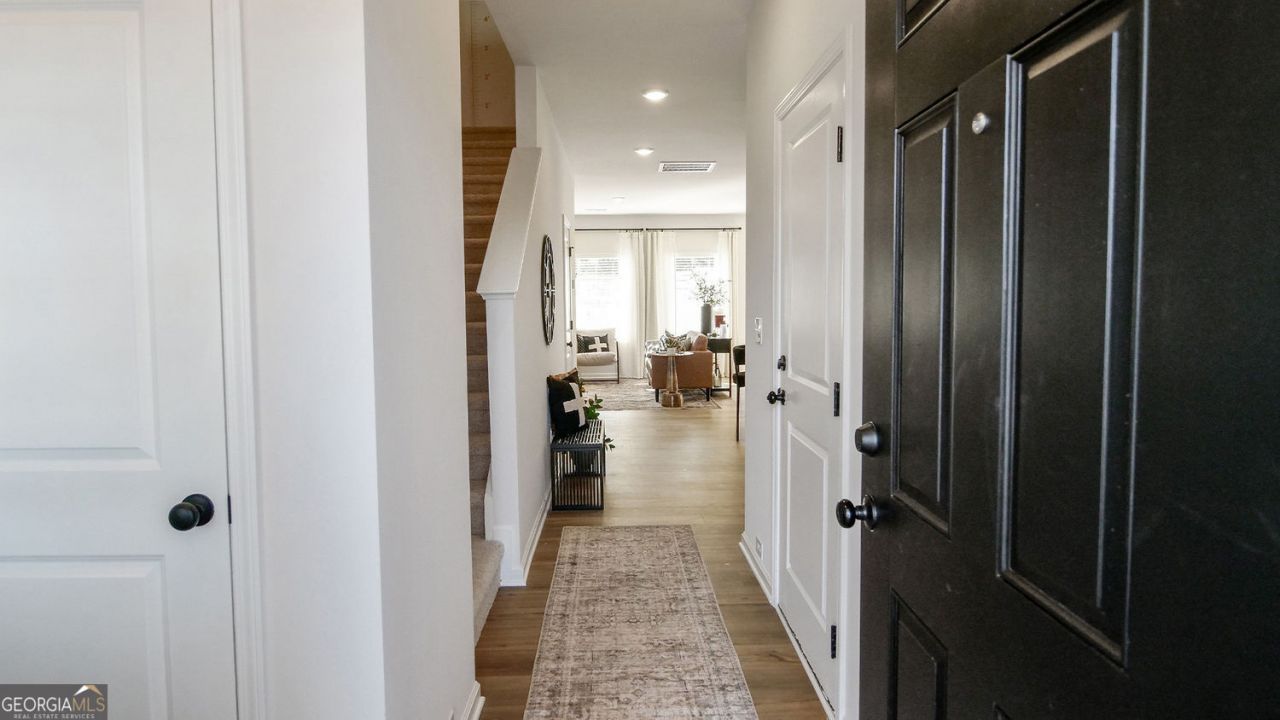 Move-in ready March! The Rutledge by Smith Douglas Homes in The Andros community. This townhome welcomes you with charming curb appeal and a covered front porch-perfect for enjoying your morning coffee. Step inside to a welcoming foyer that sets the tone for the open and airy layout. A conveniently located powder room and coat closet near the entry provide comfort and functionality for guests. The main level showcases a bright, open-concept design ideal for today's lifestyle. The fireside family room features a sleek linear fireplace, creating a cozy focal point while maintaining a contemporary feel. The spacious dining area flows seamlessly into the kitchen, making entertaining effortless. The kitchen is both stylish and functional, complete with upgraded cabinetry, ample counter space, a large center island and a generous walk-in pantry for added storage. Direct access to the rear patio extends your living space outdoors-perfect for grilling, relaxing, or hosting gatherings. Luxury vinyl flooring throughout the main level adds both beauty and easy maintenance. Upstairs, retreat to the private primary suite designed for comfort and relaxation. The spacious bedroom includes a large closet and a private en-suite bath featuring dual vanities and modern finishes. Two additional secondary bedrooms offer flexibility for guests, a home office, or hobbies, and share a well-appointed full bath. The conveniently located upstairs laundry room makes daily routines simple and efficient. Both levels feature Smith Douglas Homes' signature 9-foot ceilings, enhancing the open feel and allowing natural light to fill the home. Energy-efficient construction, modern finishes, and thoughtful design elements make this new construction townhome an outstanding opportunity. Take advantage of seller incentives when using the preferred lender, making this brand-new home even more attainable. If you're searching for new construction in Dalton, low-maintenance living, and a prime location near downtown, The Rutledge at The Andros is the perfect place to call home.