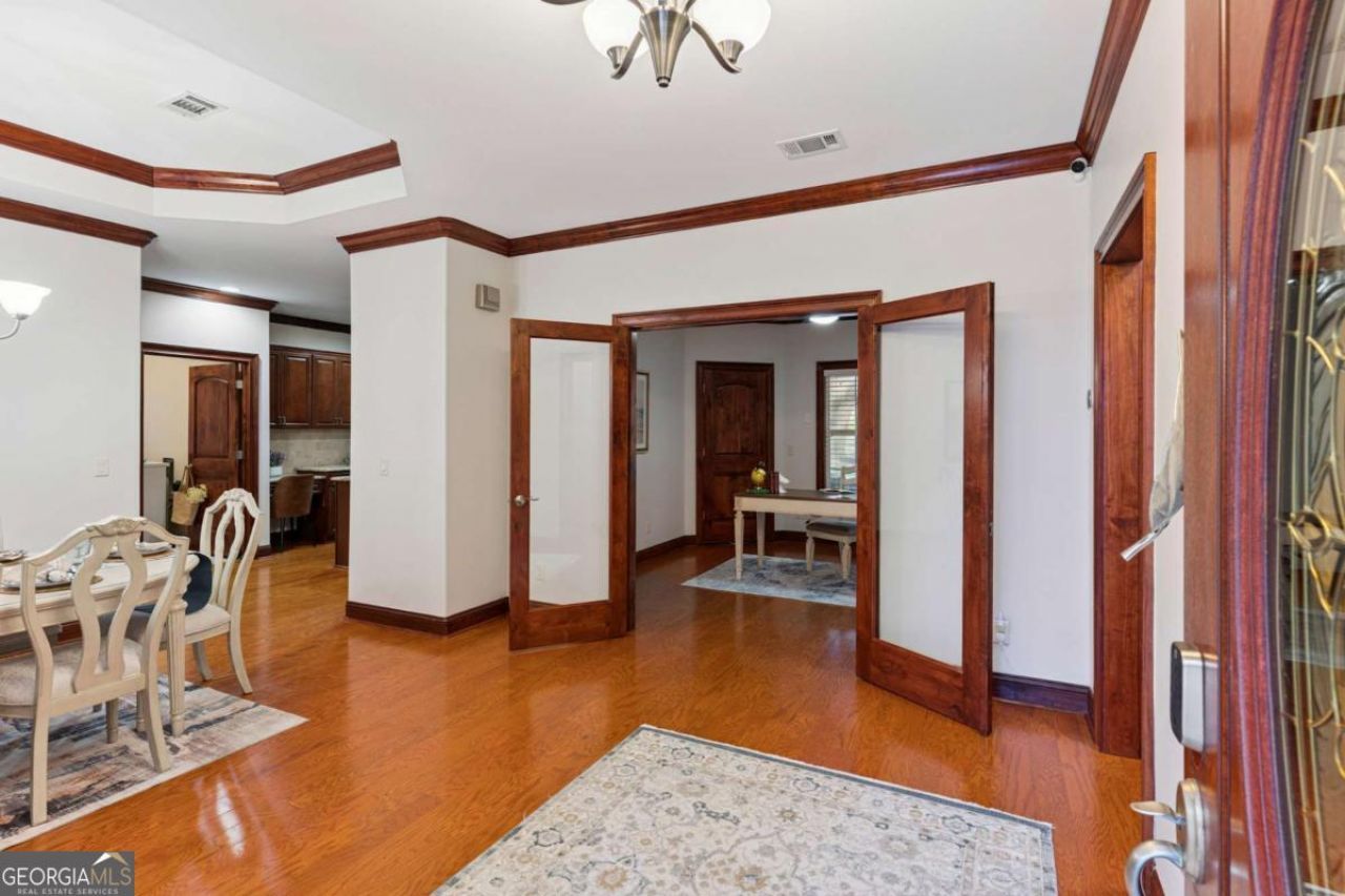 Turnkey-Ready Luxury Living in Hampton Plantation - This refined residence within the gated golf community of Hampton Plantation offers timeless craftsmanship paired with effortless, one-level living. Designed with privacy in mind, the split floor plan features ensuite baths for each bedroom, creating an ideal layout for both everyday living and hosting guests. Warm mahogany trim adds understated elegance throughout the home, while a private office with glass French doors provides a quiet and sophisticated workspace. The home is further enhanced by a spacious laundry room, oversized walk-in pantry, and a three-car garage offering exceptional storage and functionality. Recent improvements include fresh interior and exterior paint, a newly updated half bath with tile flooring, and a tankless water heater. Ceiling fans are installed throughout, and the LG washer and dryer convey for added convenience. Main living areas professionally staged with furnishings provided by JHickman Furniture, the home presents a polished, move-in-ready experience. The staging furnishings are available for purchase directly from JHickman, offering a turnkey opportunity-particularly appealing for second-home buyers seeking a seamless transition or if you just want to add a little to what you already have. Outdoor living is elevated by a screened lanai overlooking tranquil golf course views, providing a peaceful setting for morning coffee or evening relaxation. A pre-sale home inspection has been completed, with all identified items addressed, offering buyers added confidence in the home's condition.