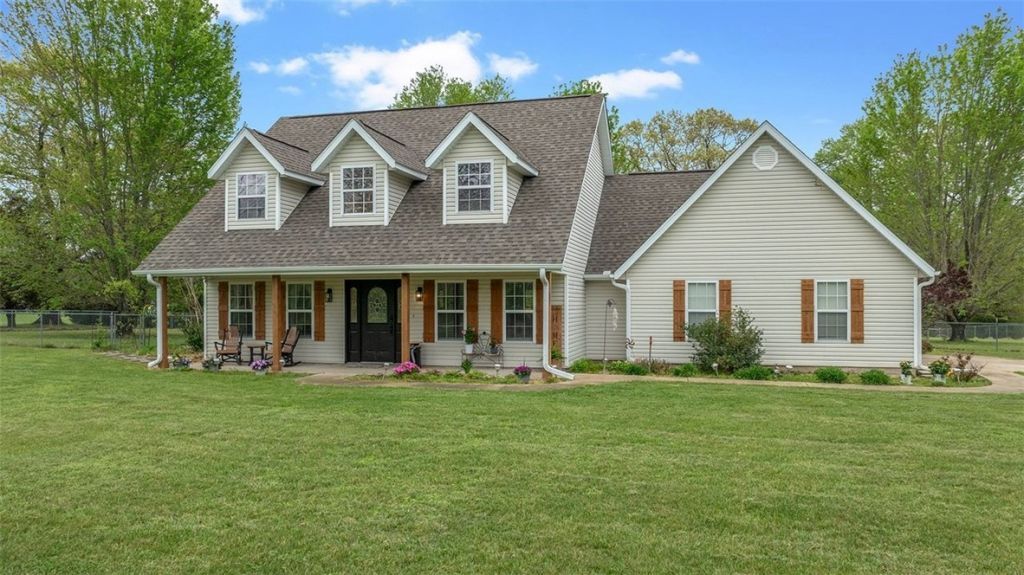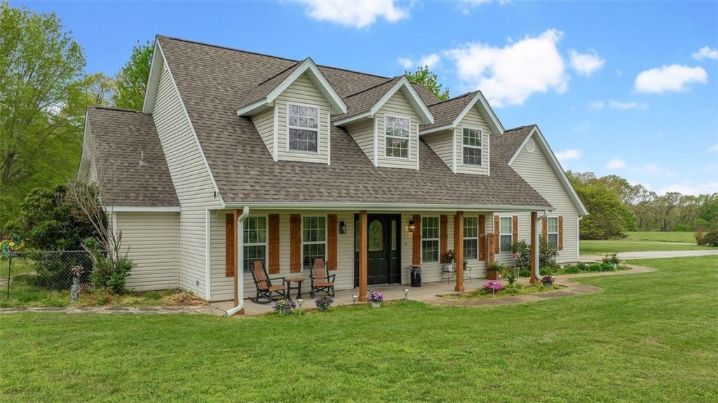 Enjoy this stunning home full of Southern charm, perfectly situated on 4.66 acres that's just minutes away from Beaver Lake. The inviting front porch offers incredible curb appeal, leading into a move-in-ready interior featuring an open floor plan vaulted ceilings and a versatile bonus room.