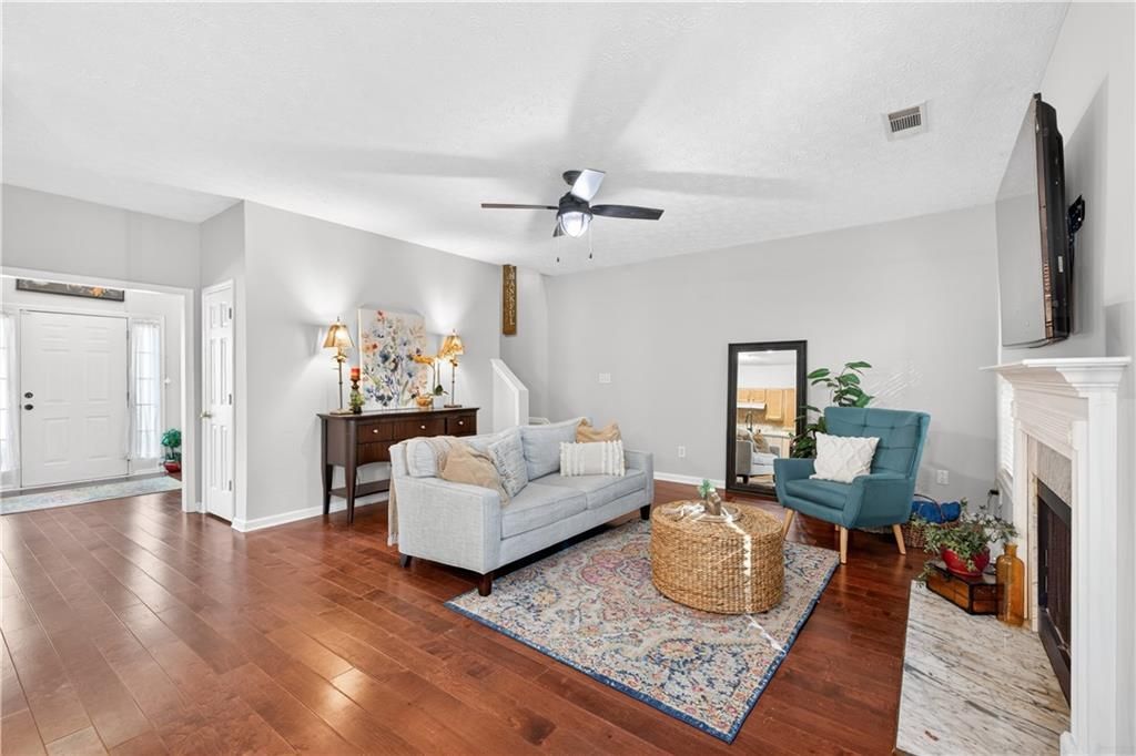 Welcome home to this beautifully appointed 4-bedroom, 2.5-bath home located in the highly sought-after Mill Creek school cluster! Step into a stunning two-story foyer flanked by a formal sitting room, that would be a perfect office or music room and generous sized separate dining room ideal for entertaining. The open-concept main level features engineered hardwoods throughout, leading into a spacious family room with cozy fireplace open with views into the private fenced back yard. The gourmet kitchen is perfect for entertaining, offering beautiful wood cabinetry, solid surface countertops, tile backsplash, gas range, and stainless steel appliances. A convenient tucked away spacious main-level laundry room just around the corner from the charming half bath. Upstairs, enjoy LVP flooring throughout the upper level. The grand primary suite features beautiful vaulted ceilings, generous dual walk-in closets, wonderful natural light and a spa-like bath with double vanity sinks, soaking tub, and separate glass shower. Three additional bedrooms with LVP, amazing natural light and walk in closets complete the upper level with one of the bedrooms being an oversized bedroom with vaulted ceilings and abundant natural light offers flexible living space. Down the hall you will find a charming full bathroom for convenience. Head back downstairs and step outside to a beautiful private, fully fenced backyard with a stunning travertine tile patio, ideal for relaxing or hosting guests. Complete with a spacious 2-car garage. This location is amazing!! Conveniently located near shopping, parks, schools and more!!