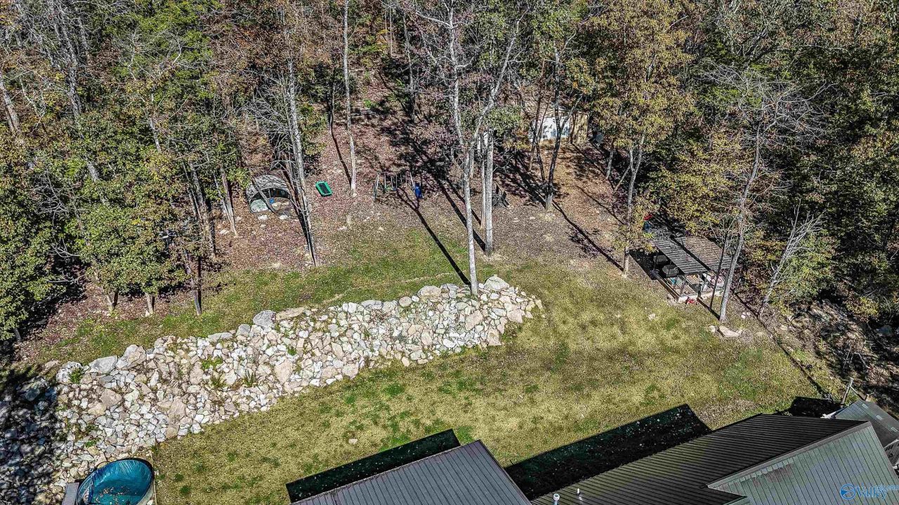Welcome home to this custom built and conveniently located (18 minutes from Huntsville) absolutely magnificent, private treed land, 10 minutes from lake Guntersville, 18 acre Homesite with 4-bedroom, 3 bath home with a terrific floor plan. Perfectly planned rooms w. walk in closets, intentionally laid out and designed chefs kitchen, wonderful large island, upgrades throughout the home include, gleaming hardwoods, gas stove and gas fire place, pretty tilework, isolated master suite, ceiling fans, fresh paint, wonderful covered porch to relax on. 20x20 Garage/shop, Large double carport , landscaping, gas ran to back porch, generator plug for house, spray foam insulation, security system!