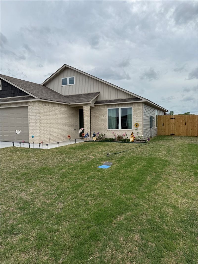 Welcome to this beautifully built 2025 home located in the desirable Oak Springs subdivision! This 3-bedroom, 2-bath home offers a modern layout with quality finishes throughout. The exterior features a classic blend of brick and vinyl siding for both style and low maintenance. Enjoy the privacy of a newly installed fence and relax on the cozy patio just off the kitchen?perfect for morning coffee or evening unwinding. Complete with a garage, this home is move-in ready and waiting for its new owners!