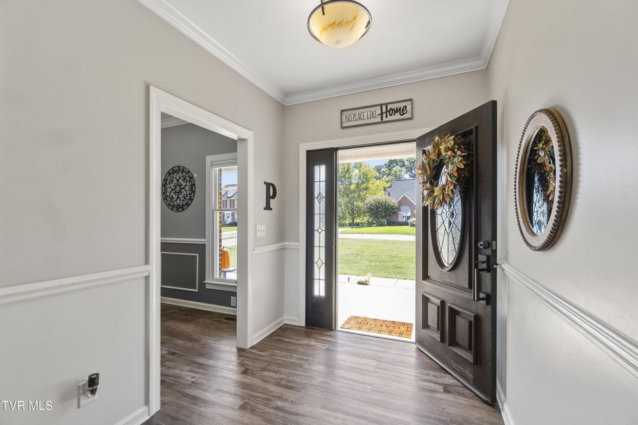 Welcome to this stunning 4-bedroom, 3-bath home offering the perfect blend of elegance, comfort, and functionality. Nestled in the desirable River Trace neighborhood, this all-brick beauty features breathtaking mountain views on just over half an acre.Step inside to find a bright, open layout accented by new flooring throughout, crown molding, and abundant natural light. The spacious living room centers around a cozy gas fireplace, while the formal dining room provides a welcoming space for family gatherings or entertaining. The chef's kitchen is beautifully appointed with granite countertops, stainless steel appliances, bar seating, and plenty of cabinet space.On the main level, you'll find the primary suite, complete with a custom tile walk-in shower, and dual vanities. Two additional bedrooms and a full bath complete the main floor, along with a convenient laundry room and attached 2-car garage with built-in cabinetry and attic storage.The fully finished lower level offers endless possibilities with a large family/game room, a spacious bedroom with generous closet space, a full bath, and a drive-under garage/workshop area?perfect for projects, hobbies, or additional storage. Walk out to a covered patio, or head upstairs to the rear deck ideal for entertaining. Seller has added a new roof, extensive landscaping and new field lines when septic was pumped. Located just a short drive from Knoxville, Asheville, Gatlinburg, Pigeon Forge, and Bristol, this home offers small-town serenity with big-city convenience. Don't miss your opportunity to own this well-maintained home with incredible views and thoughtful updates?schedule your private tour today!