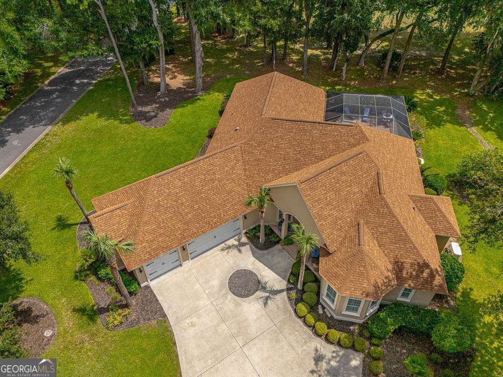 FROM THE MOMENT YOU ENTER THIS SPECTACULAR HOME, YOU WILL EXPERIENCE A BEAUTIFUL DESIGN!! High ceilings and tray ceilings...Natural light filling the whole house...plantation shutters on all the windows and sliding glass doors...seeing the screened pool and the sweeping views of the golf course and the clubhouse from most rooms...a generator for the entire house...and many other special features!! The open concept in the formal entrance has two areas...either of which could be a Dining Room or Living Room. The ceilings in this area are 16'-18' high. To the right of this is the picturesque Sitting Room. It has a dry bar with a wine cooler. It has 4 bedrooms and 3.5 baths. The gourmet Kitchen has a large center island with a sink, lots of cabinetry, a breakfast bar, an eat-in area, stainless steel appliances, a Jenn-Air gas cooktop, a warming drawer, double ovens, a microwave, an ice maker, a special hot water faucet, a trash compacter, granite countertops, and....it opens to the Family Room!! There is a split bedroom arrangement. The Primary Bedroom is on the right side of the house, and it has beautiful views of the screened porch, pool, the golf course, including the 1st tee, & the clubhouse. The ensuite bath has double vanities, a Whirlpool tub, and a separate shower. On the left side of the house are two bedrooms and a hall bath. At the back of the house is the 4th Bedroom and Bath. There is also a large Family Room with a fireplace with gas logs and built-in bookshelves. The fantastic screened heated pool/spa is perfect for relaxing and swimming...and entertaining. The Family Room has recessed music speakers connected in the ceilings that are wired out to the screened porch. There is also an outdoor kitchen with a grill and a refrigerator. There are three TV's in the house that will stay...and 3 refrigerators that will stay. Much of the furniture can remain!!!! The triple garage has Shark flooring. This home is on the corner of Rice Mill where you turn to go to the Clubhouse/Pro Shop and the 1st tee of the golf course. The views of the golf course are absolutely incredible!! This is a very special property with a one/half acre lot! This is a Zillow Showcase property. See it for more information along with a 360 walk-through video and floorplan.