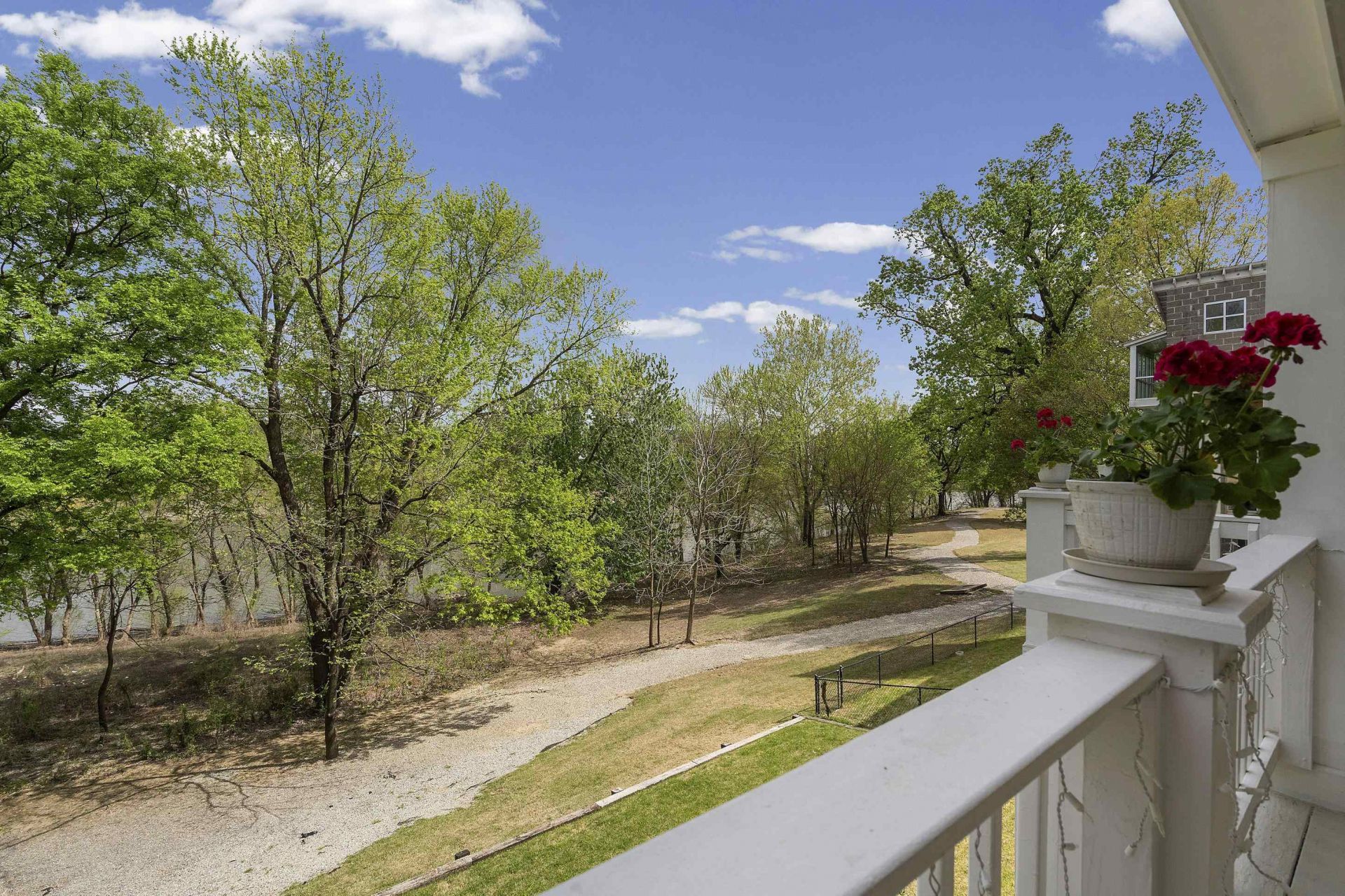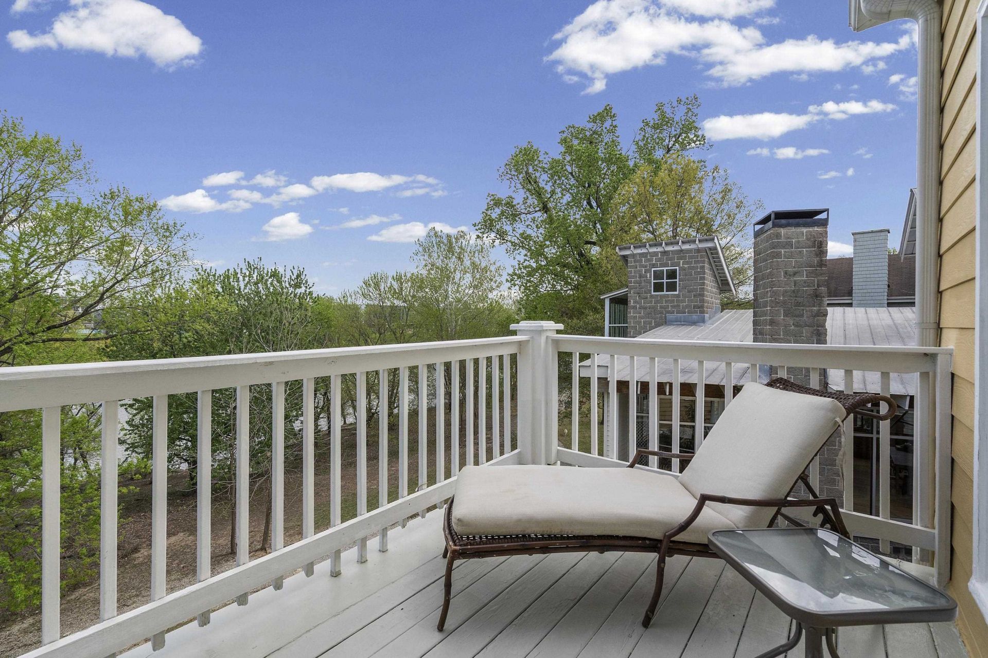 Stunning Harbor Town home with breathtaking views and direct access to scenic walking trails! This spacious property features a dramatic two story living room with soaring 19' ceilings, rich nail-down hardwood floors, and a balcony overlook that adds architectural charm. Enjoy outdoor living at its finest with two covered rear balconies - perfect for morning coffee, sunset views, or relaxing under the stars. The main level offers a flexible floor plan with a private office or optional guest suite with full bath, while upstairs you'll find a luxurious primary suite with its own balcony access, plus two additional bedrooms with hardwood flooring. Recent updates include new upstairs HVAC (2025), fresh interior paint, and whole-house water filtration system. Additional features include custom closet built-ins, ample storage (including under deck space), and a durable metal roof (approx. 8 years old). Don't miss this rare opportunity to own a beautifully maintained home with water views.