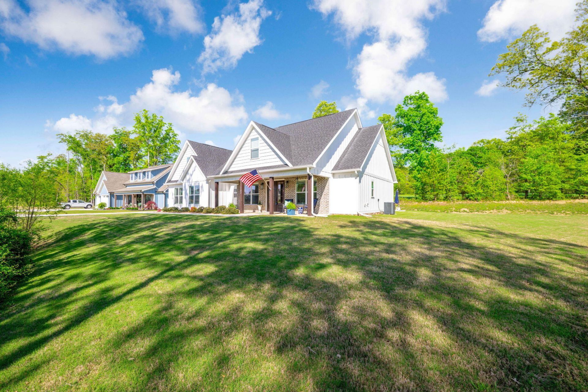 Welcome to this beautifully designed custom farmhouse offering the perfect blend of luxury, space, and move-in-ready convenience-without the time, stress, or rising costs of new construction. Situated on just under an acre in the highly sought after Bridlewood community, this 3-bedroom, 3-full bath home with a bonus room or optional 4th bedroom offers 2,718 square feet of thoughtfully designed living space in a quiet cut-de-sac.From the moment you arrive, the curb appeal sets the tone with cement board and batten siding, a custom 8-foot double front door. Inside, you will find 12-foot ceilings, extensive crown molding, and hardwood flooring throughout-no carpet.Natural light fills the home through approximately 30+ argon gas insulated windows, each finished with custom 4-inch plantation shutters. The open-concept layout flows seamlessly from the living area-anchored by a custom brick gas fireplace with shiplap and built-ins. The kitchen features quartz countertops, custom cabinetry with soft-close doors, stainless GE appliances, oversized sink, custom backsplash, and a spacious butlers pantry with wine cooler and a coffee bar.All three full baths feature tile showers to the ceiling including a private primary suite with freestanding tub, double vanity, and oversized custom tile shower with rain head. Upstairs offers a flexible bonus suite with full bath and two oversized walk-in closets.Additional features include tankless gas water heater, closed-cell foam insulation, oversized garage with insulated Wi-Fi door, LED lightening throughout, and covered back porch wired for a hot tub.Enjoy the privacy and space of your just under an acre lot -something increasingly hard to find.Why build when everything is already done for you?