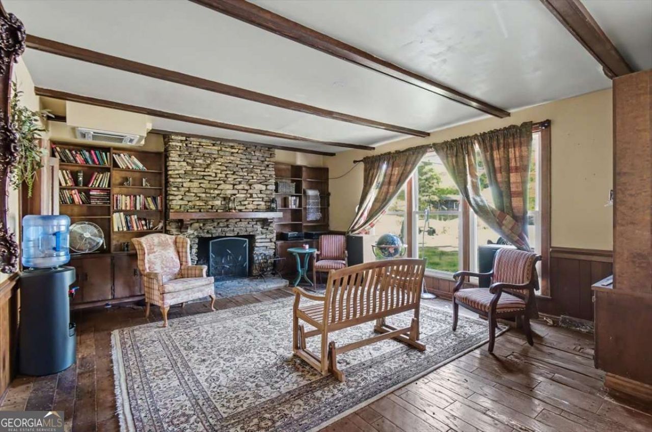 Charming historic hilltop retreat with modern luxuries, nestled on a private, peaceful equine property in the North Georgia mountains. This unique home blends preserved character-original woodwork, flooring, built-ins, shiplap, and classic materials-with high-end fixtures and thoughtful updates. Floor-to-ceiling windows flood the space with natural light, highlighting stone, slate, and wood finishes throughout. The main level features a spacious primary suite with private bath, a sun porch with three walls of windows overlooking the south and east lawn, a formal dining room with original built-ins seating 8-10, and a cozy living room with a wood-burning fireplace framed by custom shelving. A half bath completes the main level, while upstairs offers three additional bedrooms and two full baths. Set on 6.2 acres of lush, seeded pasture (no red clay), fenced in 2023 with 4-rail Centaur and aluminum hotwire, plus 2 additional acres ready for expansion. Includes a storage shed/workshop, large lean-to, and a vintage 40x60 barn with restorable stalls. Rich in history, the Sturdivant House was established by one of the County's founders J. Sturdivant from 1923 - 1927 and Judge Boney's family inhabited the property for decades after; own a piece of Chattooga County history! Own a true piece of Chattooga County heritage, just minutes from town.