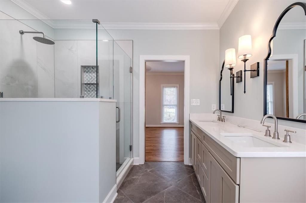 NEWLY REMODELED estate home in prestigious neighborhood. NEW Paint, NEW Hardwoods, NEW Fixtures, NEW AC Units, NEW Deck, NEW flooring throughout entire home, NEW Garage doors, and so much more...Nothing has been left untouched in this home - hardwoods throughout with a new master bath that must be seen. Three sided brick with newly painted touches, a newly added portico over front door adds a beautiful touch. Upstairs floor has three large bedrooms and a full bathroom with double vanity. Oversized Master on main floor with gorgeous soaking tub and walk in shower - double vanity in master bath. The living room with gas fireplace is perfect for entertaining or getting cozy, walk out trex deck for summertime entertainment. Beautiful kitchen with breakfast room sits next to formal dining room. Formal living room or office space welcomes you to the front of the house. The basement has a huge bonus room/den / or office space and large second laundry room. This is connected to the oversized two car garage with space for workshop. A Flat space in yard behind the house perfect for entertainment or play space, with a staircase that winds down to the most special and unique part of the property - a walking path in the wooded area below the home that offers a private and unique escape. Convenient Location: Just 2 mins to 411 8 Mins to Broad St 22 Mins to New Battery Plant on 411 30 Mins to Downtown Cartersville