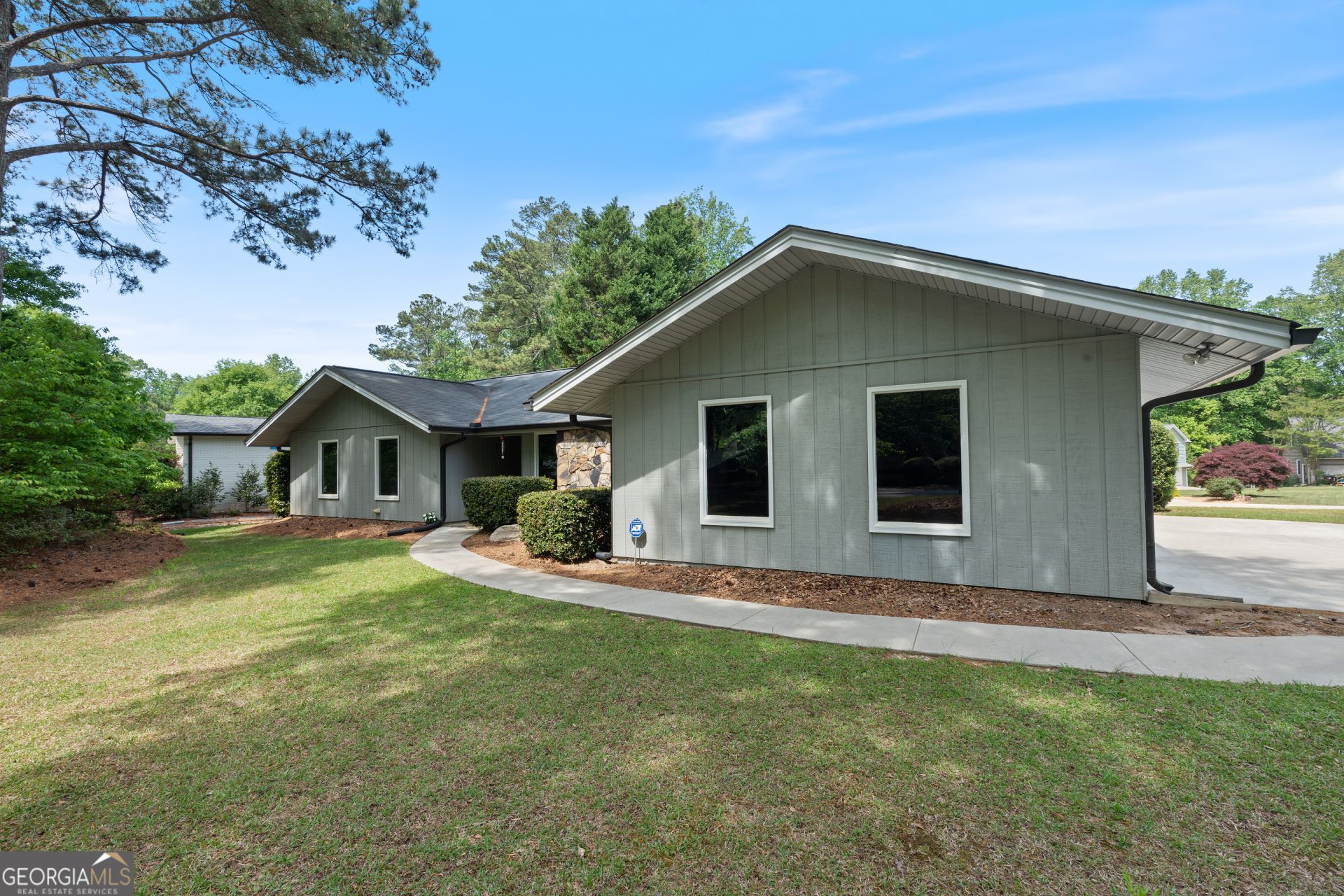 Striking mid-century ranch on a premium corner lot just steps from the park. Newer HVAC 2019, Newer Water heater 2020, Newer roof 2020. This architecturally appealing home showcases clean rooflines, a wide, grounded lot, and a natural stone entry that creates a strong first impression from the moment you arrive. Set on a spacious corner lot, the property offers added privacy, yard space, and curb appeal that stands out in the neighborhood. Mature trees frame the home, giving it an established, inviting setting that buyers are actively seeking but rarely find. Inside, you'll find approximately 1,700 plus square feet of single-level living with a layout that flows effortlessly. True to its design, the home emphasizes indoor-outdoor connection with two sliding glass doors with one from the kitchen and one from the dining area, leading out to a concrete patio, ideal for entertaining or expanding your outdoor living space. The backyard continues beyond to a secondary area with a shed already in place, offering flexibility for storage, hobbies, or future enhancements. This home retains its original character and is ready for updates, presenting a rare opportunity to blend mid-century style with today's finishes in a location that delivers. A huge plus with all the perks of a corner lot, Plus walkable to the park, Close to schools and a layout buyers consistently demand.
