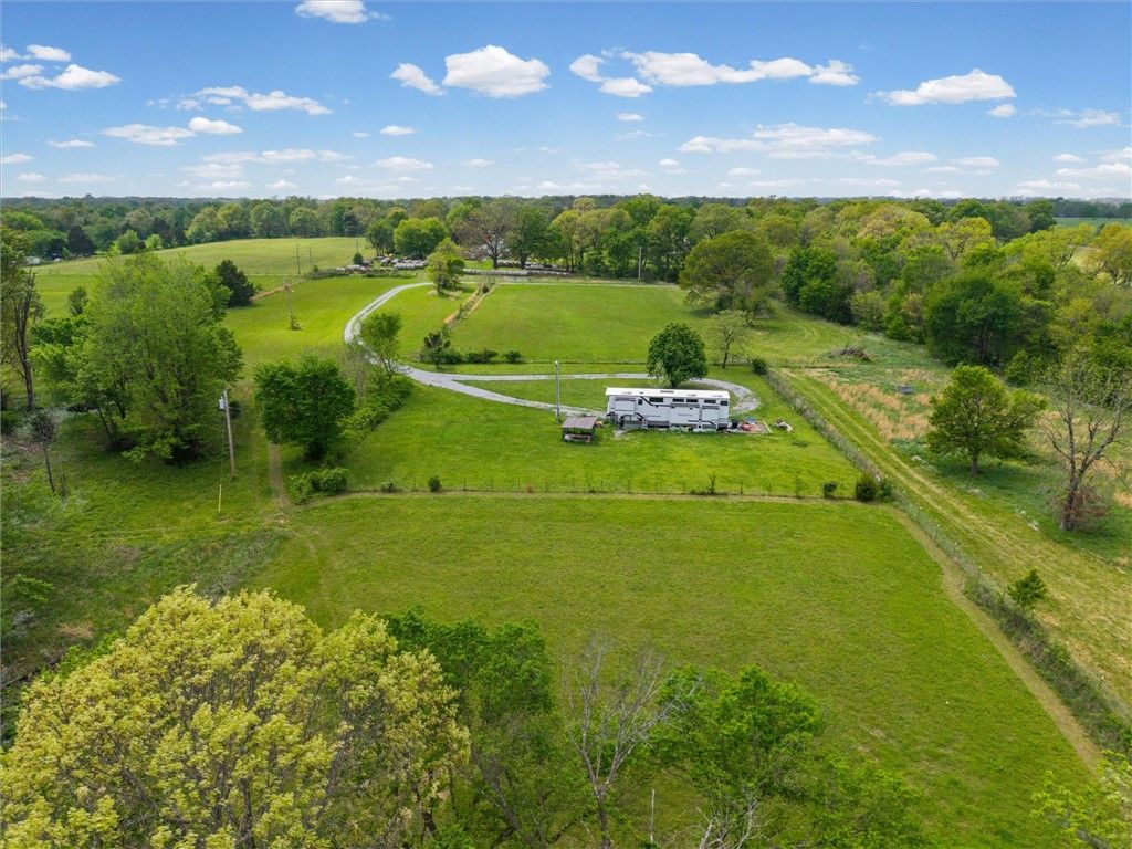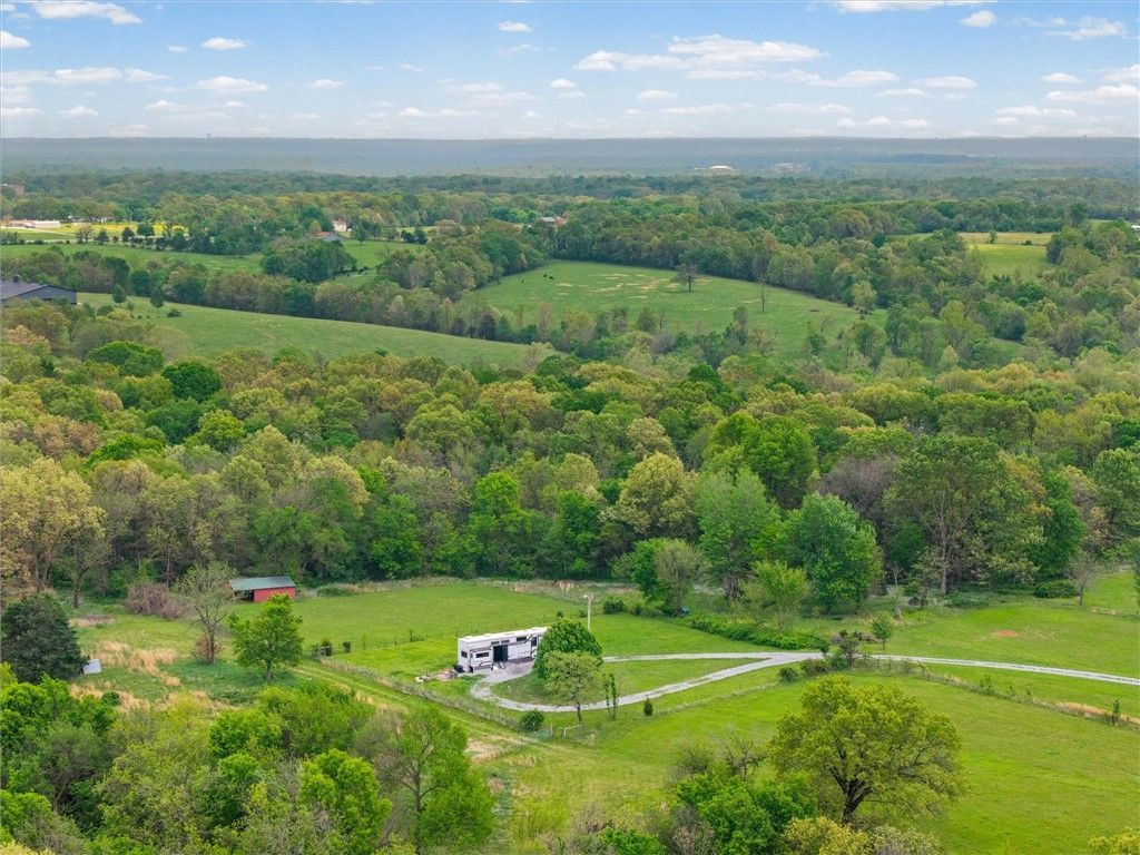 Experience true peace and quiet on this beautiful 10-acre property tucked away at the end of a quiet dead-end road just minutes from Gravette. This setting offers a level of privacy and calm that is increasingly hard to find. The front 5 acres are cleared and build-ready, featuring stunning west-facing sunset views, while the back 5 acres offer mature woods and a wet weather creek, creating a natural buffer and added seclusion. The wooded area also provides excellent habitat for wildlife, making it well suited for recreational use or hunting. Electric, water, and septic are already on site, plus a second electric and water connection is available. A small hay shed provides functional storage. Accessed via a gravel driveway easement, with some existing wire fencing. Enjoy relaxed rural living just minutes from Gravette and within easy reach of Bentonville and Rogers. Also available as two 5-acre tracts MLS 1343303 & MLS 1343307