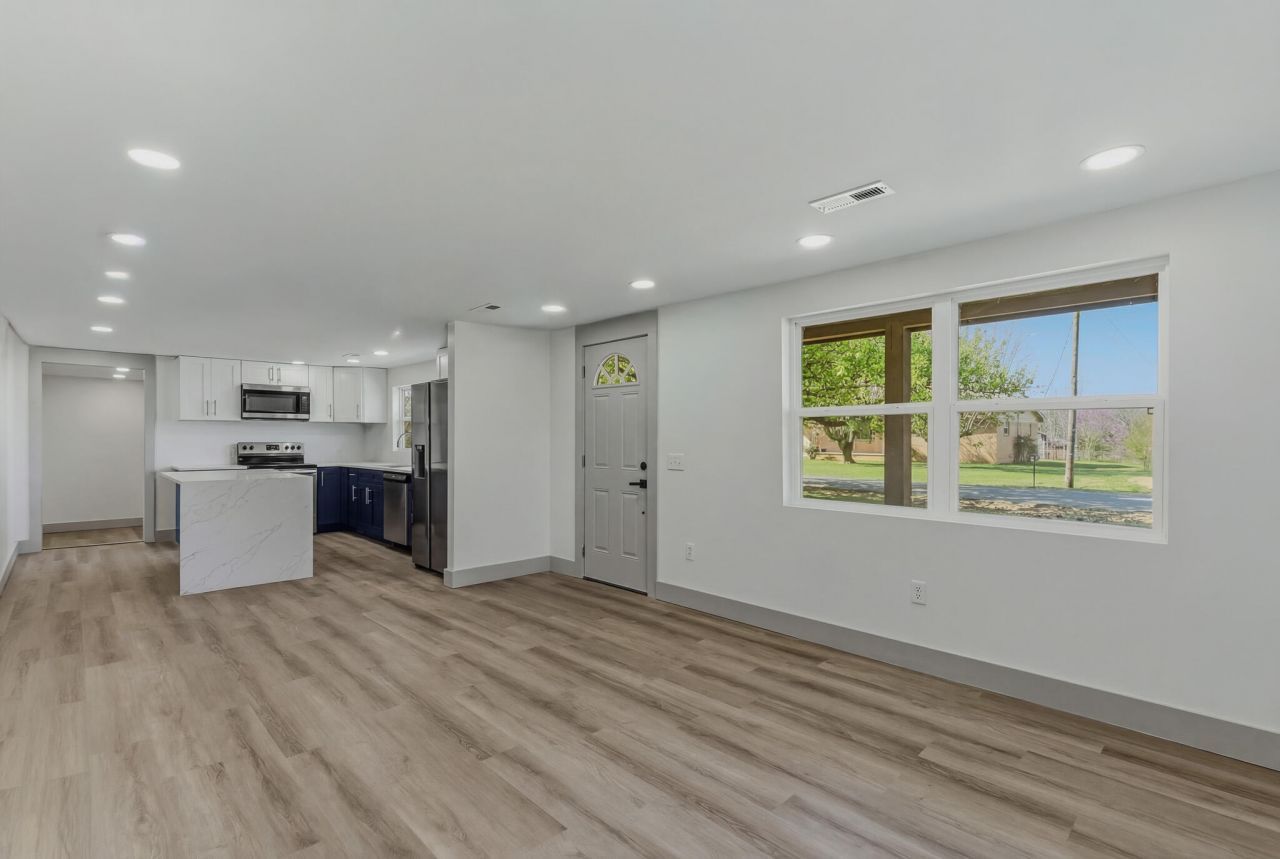Beautifully remodeled three-bedroom, two-bath ranch home that is completely move-in ready. This home features an open-concept layout connecting the kitchen and living area, with the kitchen showcasing stunning quartz countertops.Thoughtfully updated from the studs up, this home offers brand new windows, doors, trim, and finishes throughout--providing the feel of a brand-new home with modern comfort and style.The private primary suite is situated on the opposite end of the home and includes its own bathroom, a walk-in closet, and a conveniently located laundry area. Additional features include a detached garage and a spacious backyard, perfect for relaxing or entertaining. Call your favorite agent today to schedule a showing!