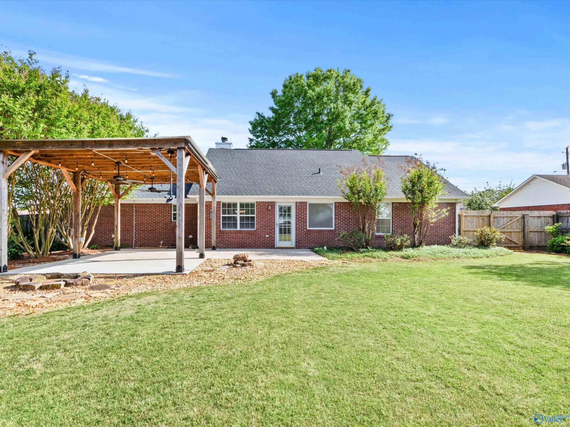 Clean, well-maintained, and thoughtfully upgraded, this charming home offers both comfort and convenience. The inviting living area features a cozy wood-burning fireplace, perfect for relaxing evenings. The oversized, fully fenced backyard showcases beautiful landscaping, a covered patio with electricity, a fire pit, and a bubbling rock?ideal for outdoor entertaining. Conveniently located with easy access to the highway, Research Park, Redstone Arsenal, shopping, dining, and downtown Huntsville. A perfect starter home with the added benefit of no HOA. Major updates include a new roof (2023) HVAC system (2024), Carpet (2024), providing peace of mind for years to come.