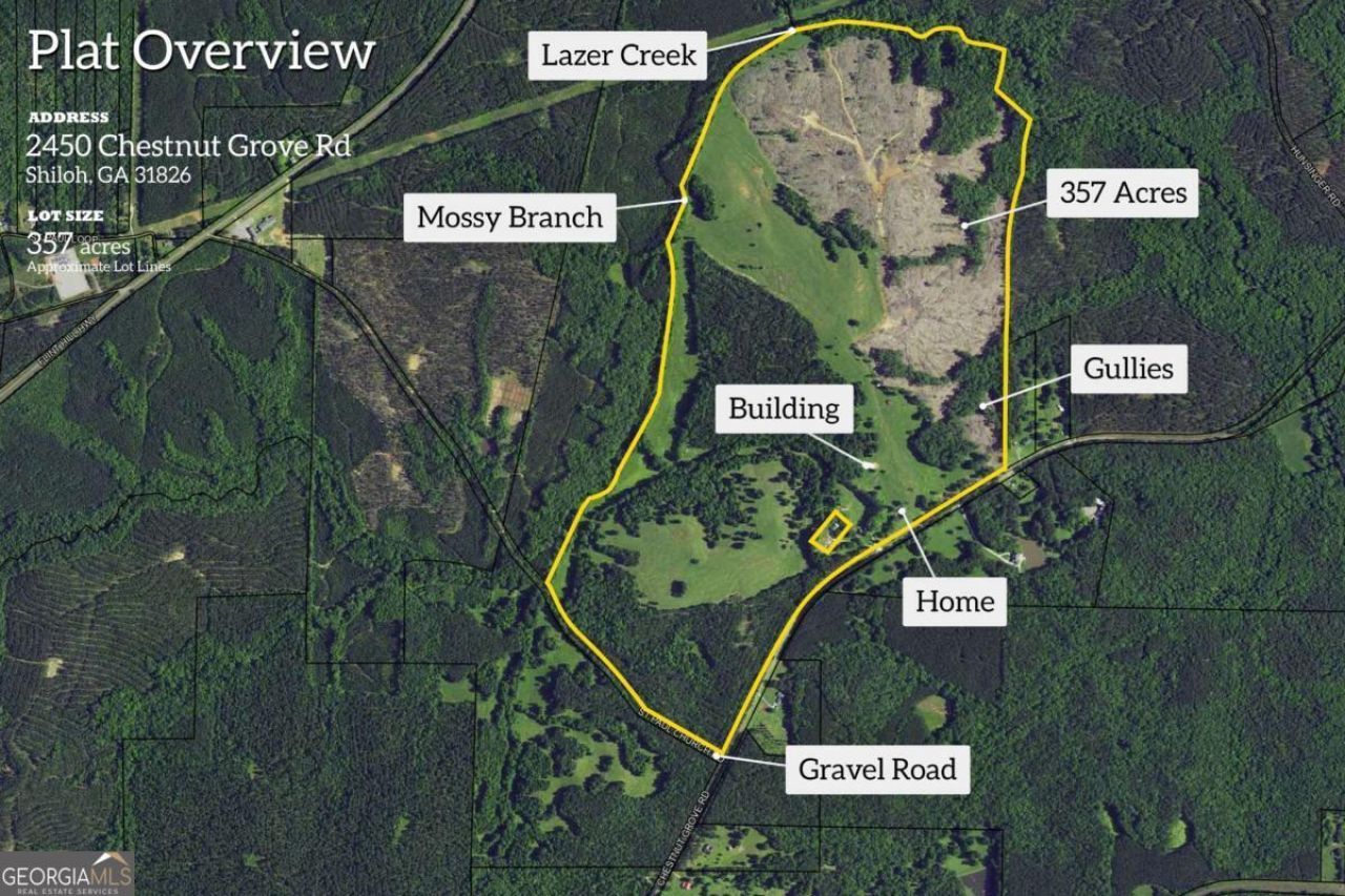 Nestled in the heart of Shiloh, Talbot County, this 357-acre cattle farm offers a rare blend of agricultural opportunity, hunting retreat, and historic charm. Just 3 miles from Manchester and 8 miles north of Talbotton on Hwy 85, the property combines serene country living with easy access to nearby amenities. The land features rolling pastures, 250 acres of pine forest (timber value over $100,000), and two creeks-Mossy Branch and Lazer Creek-providing both beauty and utility. Improvements include fenced pastures, a 1930s main house (a converted dairy barn) and one additional residences-ideal for renovation or removal. Perfect for cattle, farming, or a premier deer camp, the estate also holds subdivision potential and revenue opportunities from timber, agriculture, or hunting leases. Located near Pine Mountain, Callaway Gardens, and Roosevelt's Little White House, this property offers both investment appeal and an unmatched rural lifestyle in a safe, welcoming community.