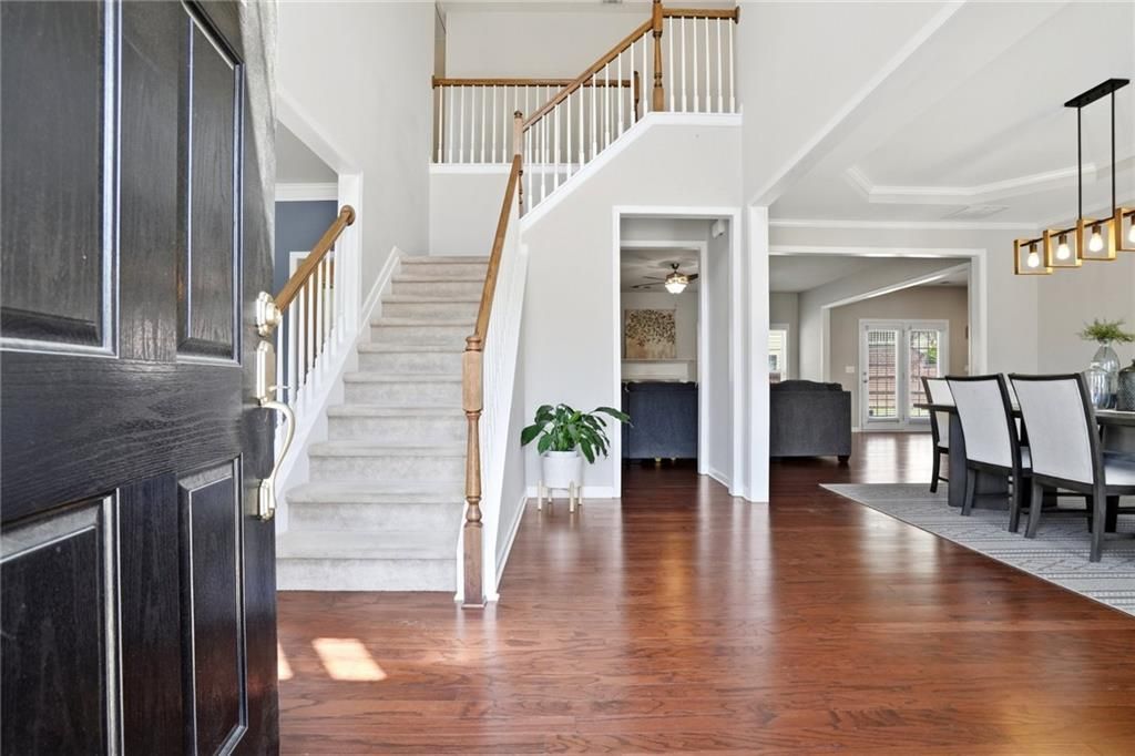 5BR/4BA home with guest suite on main, open layout, and UPSTAIRS LAUNDRY in a sought-after swim/tennis community.Minutes to Halcyon, Collection at Forsyth, Windward Pkwy and zoned for top Forsyth County schools.The open and inviting floor plan offers a welcoming foyer that flows into the dining room with trey ceiling and into the family room. The kitchen is open to the breakfast area and family room and features granite countertops, tiled backsplash, abundant cabinetry, large island, pantry and ample counter space.Upstairs, the owner's suite includes a trey ceiling, sitting area and plenty of natural light. The en-suite bath offers separate vanities, soaking tub, separate shower and walk-in closet. Three additional bedrooms, two full baths and a conveniently located UPSTAIRS LAUNDRY ROOM complete the upper level.Enjoy a level, fenced backyard with patio, perfect for relaxing or entertaining.Ideally located just minutes from Halcyon, The Collection at Forsyth, new Whole Foods and Trader Joe's, and the Windward Parkway corridor with shopping, dining and entertainment.Located in a swim/tennis community and zoned for top-rated Forsyth County schools including Big Creek Elementary, Desana Middle and Denmark High School.