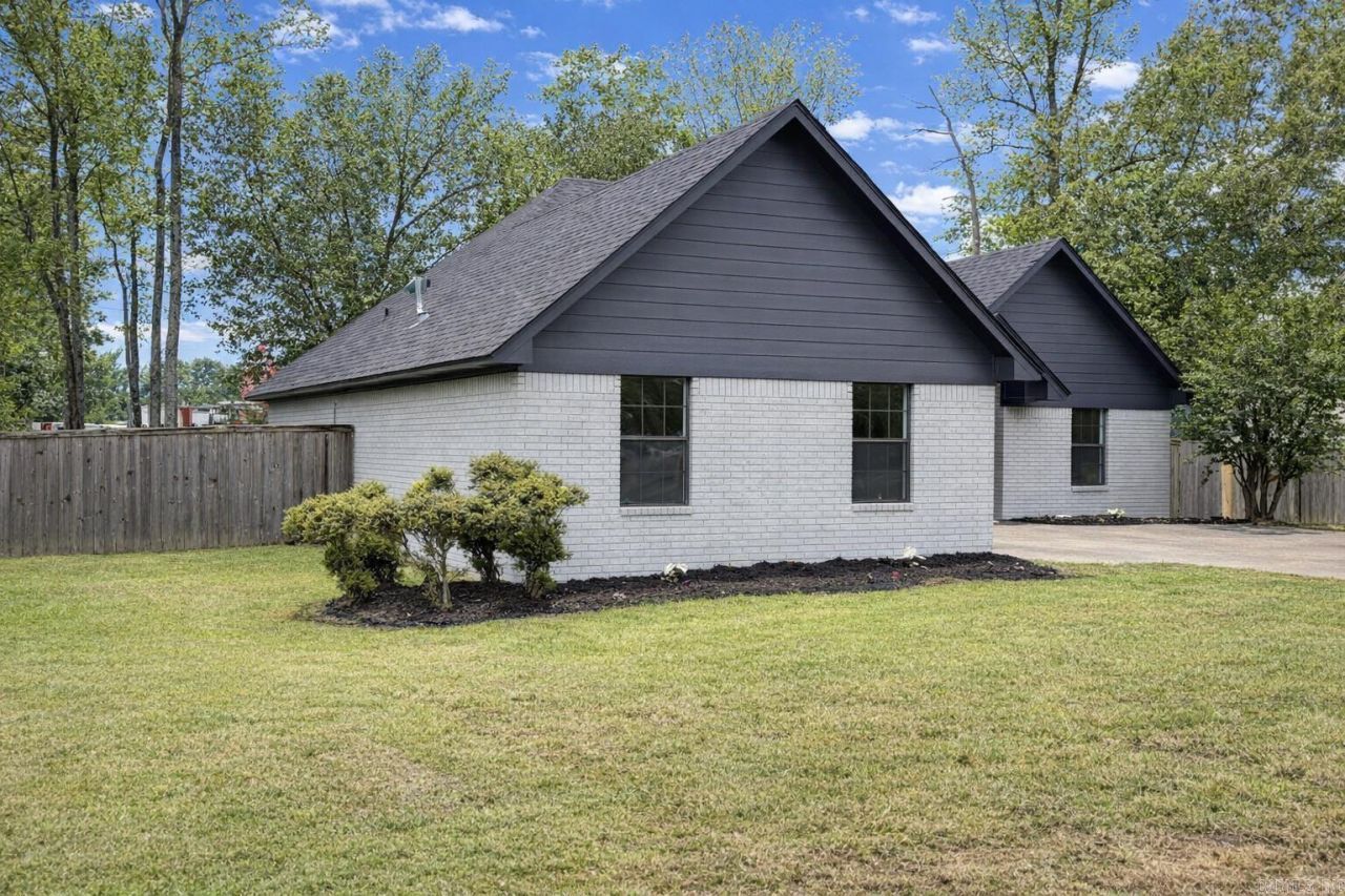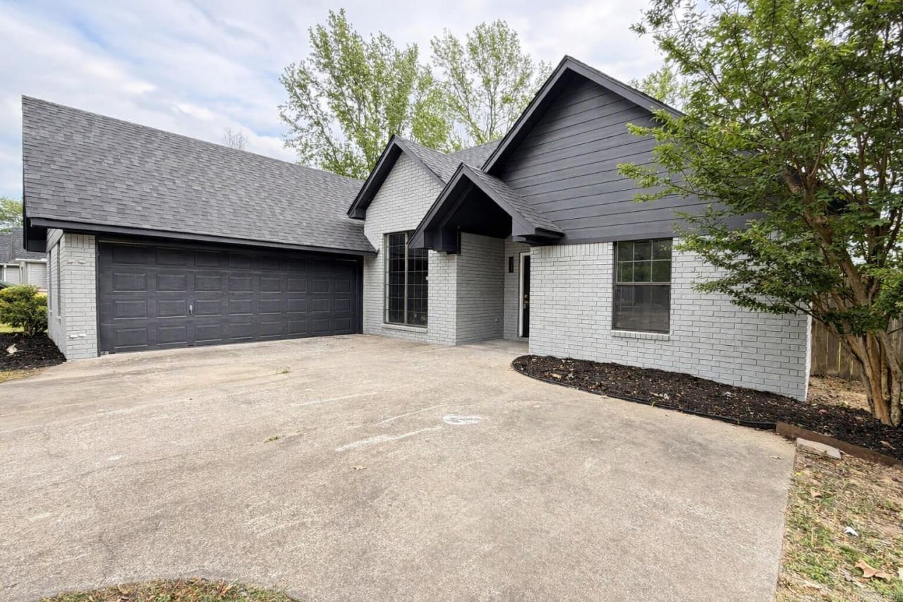 Modern luxury defines this fully remodeled 3 bedroom, 2 bath home, showcasing a sleek gray brick exterior, dark charcoal accents, and major 2026 upgrades including a new roof and new smart HVAC. Its clean lines and contemporary profile create standout curb appeal. Inside, the open floor plan highlights warm wood flooring, vaulted ceiling and a dramatic black fireplace designed to look like marble. The feature wall includes an electric fireplace with remote, adding both style and convenience. Oversized grid-style windows fill the space with natural light, enhancing the home???s modern aesthetic. The designer kitchen offers a true upscale feel with quartz countertops, a full-wall backsplash, white and black cabinetry, gold fixtures, and a spacious island ideal for entertaining. The luxury primary suite delivers a spa-like retreat with a free-standing soaking tub, a statement chandelier, a large walk-in shower, sleek wall-mounted vanities, and a walk-in closet. With its modern design, upscale materials, and thoughtful upgrades throughout, this home offers a rare blend of elegance, comfort, and contemporary style.