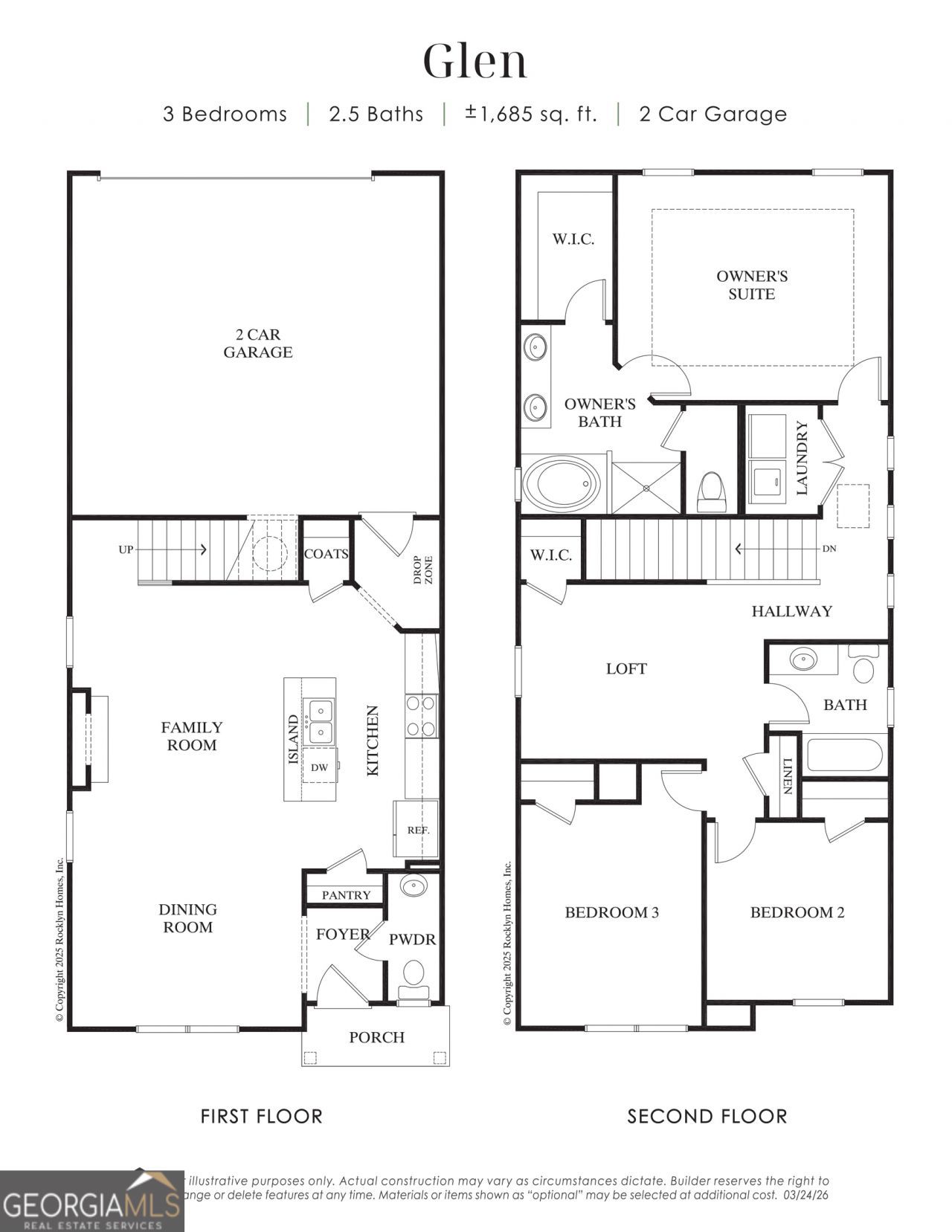 Introducing a new maintenance-free community conveniently located in the beautiful city of Hoschton. Our stunning IVEY floorplan features 3 bedrooms and 2.5 bathrooms, along with a rear-entry 2-car garage, a 2-car driveway, and a welcoming concrete front patio. The gourmet kitchen is equipped with stainless steel appliances, including a gas range, microwave, and dishwasher, complemented by 42 cabinets, a walk-in pantry, and a separate dining room that overlooks the family room. Upstairs, you'll find two spacious secondary bedrooms, a private laundry room, a versatile bonus loft, and an inviting owner's suite complete with tray ceilings, a cozy sitting area, a large walk-in closet, and a raised vanity with dual sinks. The luxurious bathroom also features a relaxing garden tub and a separate shower. This home is currently under construction. For more details and availability, please contact agents Ida Spahr and Alex Jenkins. For directions, search Tribute by Rocklyn Homes on Google Maps. From I-85 North, take Exit 129, turn right onto Highway 53, and the community will be on the left in approximately 3.3 miles.