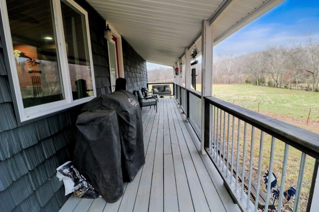 Located in the heart of Houston County, 290 Sine Lane is a one-of-a-kind cottage/cabin escape that perfectly blends warm design with a serene Tennessee landscape. This home's interior is defined by character, featuring wood-plank ceilings and exposed beams that run throughout the main living areas. The custom kitchen is a true showstopper with its sage-green cabinetry, industrial corrugated metal backsplash, and a striking tin-style ceiling. Each bedroom offers a unique touch with multi-tonal wood accent walls and space-saving barn-style sliding doors, while the spa-inspired bathroom is equipped with a luxury shower tower with body jets and a deep vessel sink.The exterior is just as distinctive, highlighted by a vibrant red metal roof and matching chimney that give the home incredible curb appeal. A deep, covered wraparound porch provides the perfect vantage point for enjoying the surrounding tree-lined acreage and peaceful rural views. Situated on a large lot with an included storage shed, there is plenty of room for outdoor hobbies or future projects. Experience a home that is anything but ordinary-schedule your showing today.