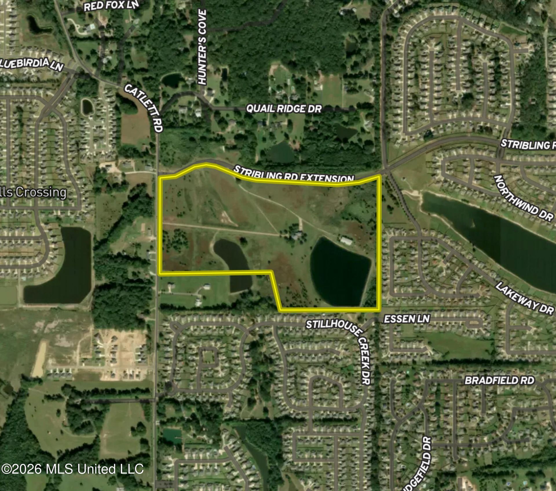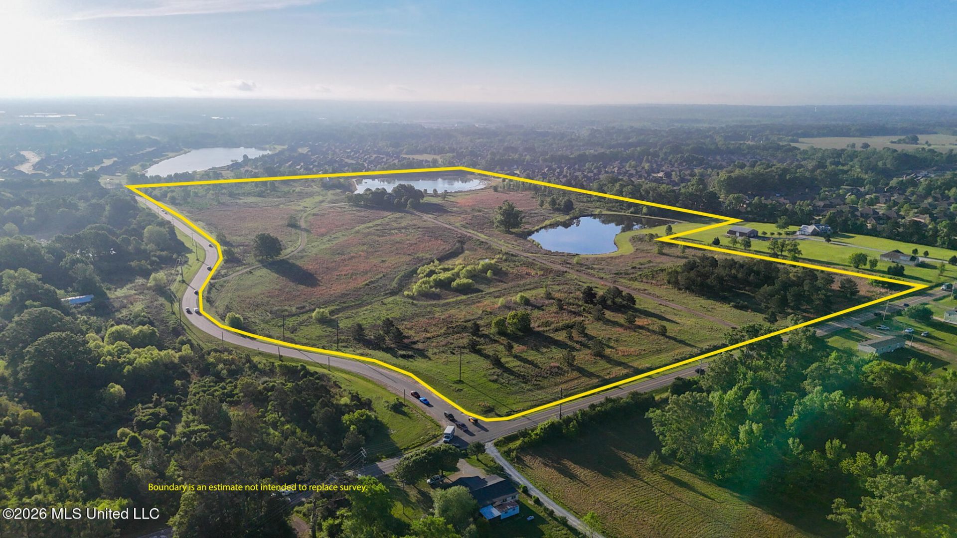 ±86.8 acres on Stribling Road Extension & Catlett Road in Madison County, MS, just outside Madison and near Gluckstadt. Located in the path of rapid residential growth, this tract offers ~3,800 ft of frontage on two well-known, high-traffic corridors (≈8,400-11,000 VPD), providing excellent access and visibility. The property features gently rolling topography, strong natural drainage, and ~14 acres of lakes ideal for subdivision design and premium homesites. Water and sewer available through Bear Creek Water Association, with power and gas nearby. Includes a 4,344 sq ft home that could be refurbished into a luxury estate or clubhouse, plus a large metal shop (value not assumed). Zoned A-1 and well suited for residential development or estate lots.