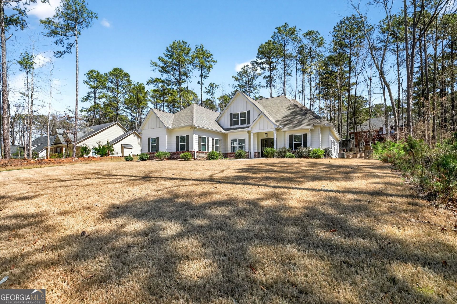 Welcome to the highly desirable Fairfield Plantation! This appx 3.5 year young, newer-construction home featuring today's popular modern design with open-concept main living areas and contemporary exterior styling. Built in 2022 with 5 bedrooms and 4 baths on an oversized .62 acre double lot. The main level showcases a flowing floor plan with vaulted living space, contemporary finishes, quartz countertops, soft-close cabinetry, stainless appliances, and abundant natural light. The spacious primary suite includes tray ceilings, bay windows, and a spacious primary bath featuring an oversized walk-in closet (approximately 9*9) and a large soaking tub. Three additional generous secondary bedrooms with bathroom access. Two 80 gal water heaters are also an added bonus for the large families! Large bonus room with full private bath and 5*7 walk in closet adds flexibility for guest suite, office or teen/in law space. Access from the bonus room to appx 890 sf of floored attic space for additional storage. Step outside to a large covered patio perfect for relaxing and entertaining. Located in a gated (with on site security), resort-style community offering lakes, golf, pools, tennis, pickleball, walking trails, beaches, and clubhouse amenities. Convenient commuter access with approximately 30 miles to the Alabama state line, about 32 miles to Downtown Atlanta, and approximately 43 miles to Hartsfield-Jackson Atlanta International Airport. A perfect blend of modern design, space, and location. Don't miss this exceptional opportunity!