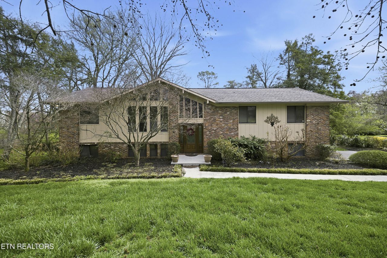 Welcome to this beautifully maintained 4-bedroom, 3-bath versatile split-foyer home nestled on a quiet circle in the desirable Village Green subdivision in the heart of Farragut. Step inside to an attractive marble entryway that opens to elegant main living spaces featuring teak hardwood floors and a dramatic cathedral ceiling in the living room. Floor-to-ceiling windows fill the space with natural light, creating a bright and inviting atmosphere. A formal dining room provides the perfect setting for gatherings and entertaining. The gourmet kitchen, warmed by a stone fireplace, is a chef's dream, showcasing beautiful maple cabinetry and premium GE Monogram appliances, including an Advantium multi-function over and an impressive 148 inch built-in refrigerator and freezer. The kitchen flows seamlessly outdoors to an expansive screened deck, ideal for relaxing or entertaining while overlooking a spacious, level, and private backyard. Downstairs the walkout basement offers a welcoming retreat featuring a large rec room with a brick fireplace and wet bar, along with a fourth bedroom and full bath - perfect for an in-law suite, teen living space, or extended entertaining area. Residents enjoy neighborhood amenities including two swimming pools, tennis courts, and playgrounds, all within walking distance. The home is also conveniently close to excellent schools, shopping, parks, the library, and a wide variety of restaurants. This exceptional property combines comfort, flexibility, and a prime location.
