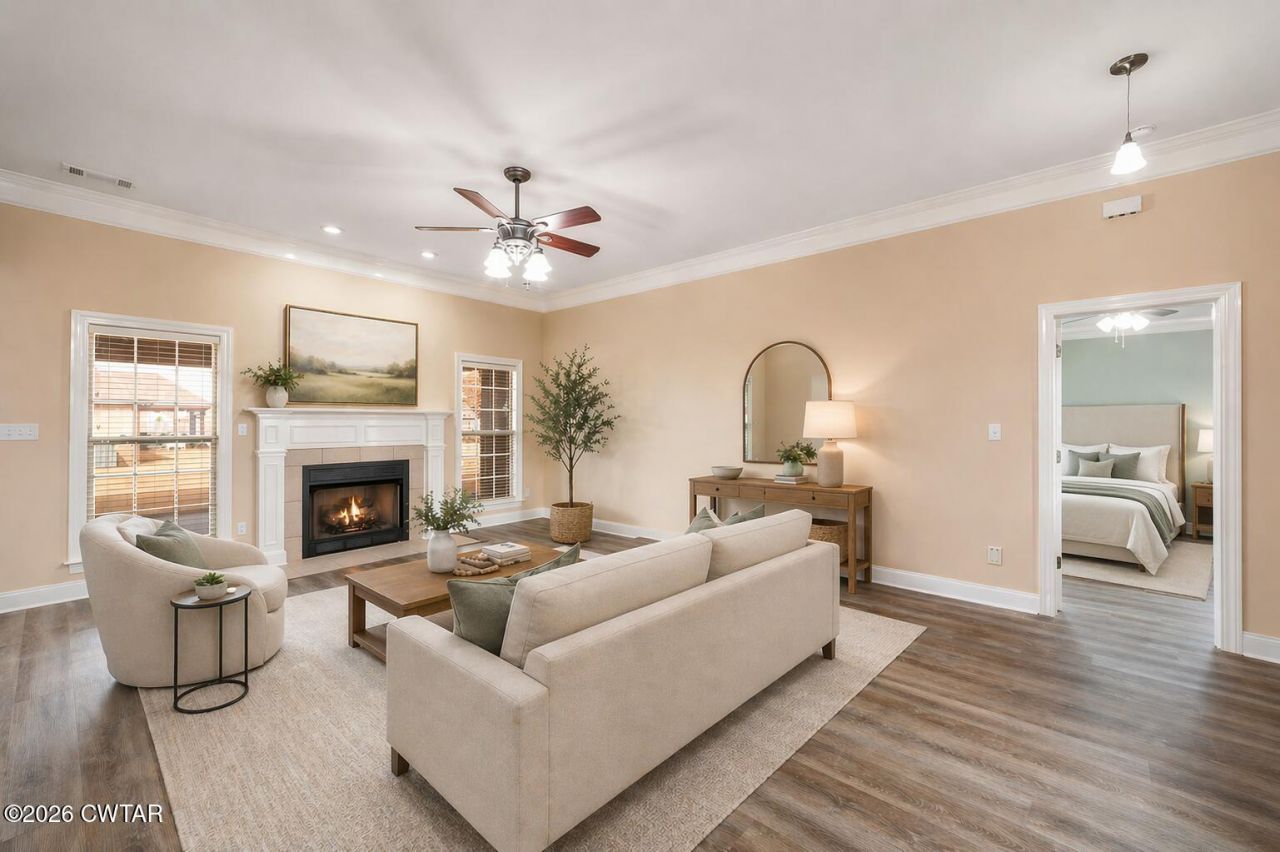 Discover easy living in this beautifully maintained all-brick home, designed for comfort and style. Step inside to an inviting open-concept layout where natural light pours in and a cozy fireplace serves as the heart of the spacious living room. The home shines with luxury vinyl flooring throughout, sleek stainless-steel appliances, and a bright breakfast nook that flows seamlessly from the kitchen. Host elegant dinners in the formal dining room or enjoy quiet mornings on the generous covered rear patio ? perfect for year-round outdoor relaxation. Retreat to the serene primary suite featuring a dramatic tray ceiling, a spa-like ensuite bath with a separate walk-in shower, luxurious jetted Jacuzzi tub, and dual vanities. Move-in ready, effortlessly stylish, and built to last ? this home checks every box for relaxed, low-maintenance living. Schedule your private tour today!
