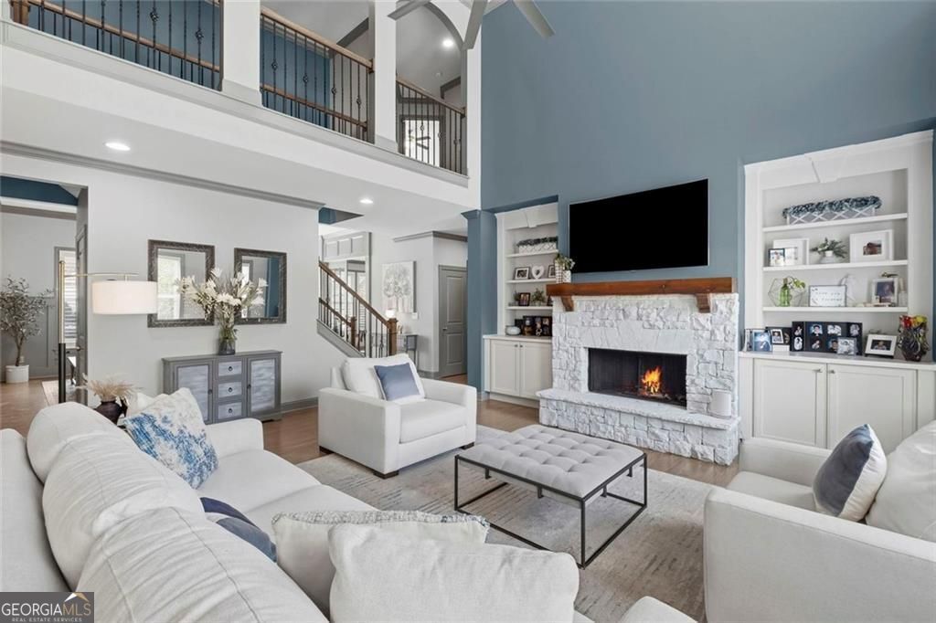 Welcome to 3745 Williams Point Drive, a beautifully maintained & thoughtfully upgraded retreat nestled on a flat, beautifully landscaped lot in one of Forsyth County's top school districts, convenient to GA 400, Northside Hospital, & an abundance of shopping & restaurants at Vickery Village, Cumming City Center, Halcyon, & Avalon. This 5-bedroom, 4-bathroom home with a bedroom & full bath on the main offers the perfect blend of elegance & everyday comfort, filled with natural light, gorgeous real hardwood floors, & neutral designer tones throughout. As you enter this exceptionally maintained home, you're welcomed by an elegant formal dining room & a private executive office with glass French doors, setting the tone for both refined entertaining & productive living. The home then unfolds into inviting, open living spaces including a dramatic two-story great room with an upgraded painted stone fireplace, a warm & welcoming keeping room with a shiplapped vaulted ceiling & fireplace with an upgraded cedar wood mantel-opening into a spacious well-equipped eat-in gourmet kitchen with a large island, abundant cabinetry, oversized walk in pantry, all stainless steel appliances to include upgraded refrigerator, another small office/flex room with glass door & seamless flow for gathering & entertaining. The primary suite serves as a peaceful sanctuary, complete with its own upgraded fireplace with stone to the ceiling, a spa-like bath featuring double vanities, a large shower with double shower heads, separate soaking tub, & a stunning $30,000 double sided custom closet. Upstairs also includes 3 additional thoughtfully planned, spacious bedrooms with walk in closets, one en-suite & the other with a shared bathroom to include double vanities. The oversized laundry room opens to the hallway & owner's suite for convenience. Thoughtful upgrades continue throughout home with custom crown molding, upgraded iron balusters, plantation shutters on front-facing windows, custom 2 blinds throughout, recessed lighting, & smart home features including Nest smoke/carbon monoxide detectors & smart thermostats. Step outside to unwind in your own private oasis featuring a covered back porch with ceiling fan, dual gas connections for grilling, & a large concrete patio overlooking beautifully enhanced landscaping with emerald trees, rose garden, azaleas, crepe myrtles, & more. All supported by an irrigation system throughout yard & a french drain system. The landscaping is highlighted by elegant dusk-to-dawn architectural lighting for ambiance. The unfinished basement is already equipped with electrical & a dedicated HVAC system, offering incredible future potential, while the freshly painted exterior, new wood trim, epoxy-coated floors in the oversized three-car garage, 3 fireplaces & upgraded stainless steel ceiling fans in the main living room & morning room complete this exceptional home. Located in a very desirable swim and tennis community, this immaculate property offers not just a home, but a lifestyle designed for comfort, beauty, and effortless living.