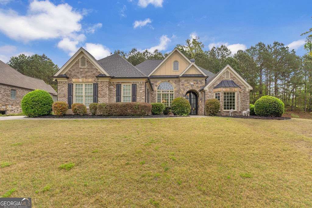 Welcome To Refined One-Level Living In This Architectural Craftsman-Style, Three-Sided Brick Ranch, Nestled Within The Exclusive Estates of Union Crossing-A Private Enclave Of Custom Built Homes Where Timeless Design Meets Modern Luxury. A Striking Double-Door Entry Sets The Tone, Opening Into An Elegant, Light-Filled Interior Featuring A Spacious Open Floor Plan, A Formal Dining Room, And Soring 20-Foot Vaulted Ceilings. The Inviting Family Room Is Anchored By A Stunning Marble Fireplace, Creating The Perfect Setting For Both Everyday Living And Upscale Entertaining. At The Heart Of The Home, The Chef's Kitchen Is A True Showpiece, Boasting Granite Countertops, A Kitchen Island, And Premium Appliances Including Double Jenn-Air Built-In Ovens, A ZLINE Six-Burner Gas Cooktop, With Bosch Additions--An All Stainless-Steel Refrigerator, Dishwasher, And Wine Cooler--Designed To Impress Even The Most Discerning Culinary Enthusiast! The Elegant Primary Suite Offers A Private Retreat, Complete With Its Own Marble Fireplace For Added Warmth And Sophistication. Throughout, The Primary Bath Features Luxurious Travertine Tile, His & Hers Granite Sinks, And An Oversized Walk-In Closet. Secondary Bedrooms Are Thoughtfully Designed With A Jack-And-Jill Bath, While The Fourth Bedroom Features A Private En-Suite--Ideal For An Au Pair, Guest Accommodations, Or Multi-Generational Living. With Its Seamless Blend Of Craftsmanship, High-End Finishes, And Functional Design--All On One Level. Just Minutes From Hartsfield-Jackson Atlanta International Airport-- This Exceptional Home Delivers Comfort, Elegance, And Convenience In One Of South Fulton's Most Desirable Communities. Experience The Perfect Balance Of Privacy, Prestige, And Effortless Living In The Estates Of Union Crossing.
