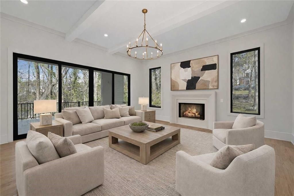 READY NOW | WALK TO DOWNTOWN ALPHARETTA. Experience an architectural masterpiece by Modernize Properties, where refined luxury meets an effortless lifestyle on a private, pool-ready lot just steps from the vibrant shops and restaurants of downtown Alpharetta. This stunning new construction home features soaring 12-foot ceilings on the main level, framing an open, light-filled floor plan defined by wide-plank white oak flooring and curated designer finishes. The chef's culinary hub is anchored by an oversized quartzite waterfall island, custom cabinetry, and a hidden walk-in pantry, flowing seamlessly into the vaulted primary suite?a serene main-level sanctuary with a spa-inspired bath and a large custom closet. A private guest suite and a dedicated home office behind dramatic glass and steel double doors complete the main floor. Transition effortlessly to the outdoors through expansive sliding doors that reveal a vaulted covered living space with a fireplace, ideal for year-round entertaining overlooking the level backyard. The upper level offers a spacious loft and three additional bedrooms, each featuring a private en-suite bath. Superior craftsmanship is evident in every detail, from the 3-car garage with 9' tinted glass doors and full paver driveway to the spray foam insulation, tankless water heater, and a massive daylight basement ready for your custom finish.