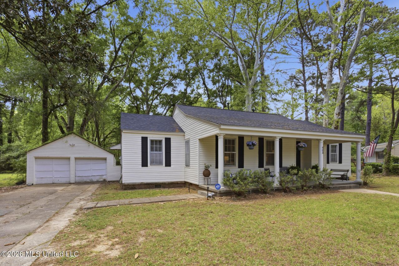 Welcome to 404 Colonial Circle! With updates ,this move-in ready 3-bedroom, 2-bath home with Bonus Space offers approximately 1,689 square feet of functional living space, all situated on a beautiful lot just under a .5 acre and priced at $185,000.A wide, inviting front porch stretches across the entire front of the home, creating the perfect place to relax and enjoy the peaceful surroundings.Inside, you'll find hardwood floors throughout the main living areas and bedrooms, with ceramic tile in the kitchen and baths--no carpet. The foyer entry includes a coat closet and opens into a spacious step-down living room featuring a gas log fireplace, built-ins, and a layout that offers easy furniture placement.Just off the living room is a versatile bonus room currently being used as a bedroom, but ideal for a home office, playroom, or additional living space. A formal dining room connects seamlessly to the fully remodeled kitchen, where you'll find all new cabinetry, a Café professional gas range, wood countertops, updated lighting, new plumbing fixtures, a new sink, and updated hardware. There is also space for a small café table, adding both charm and everyday functionality.Adjacent to the kitchen is a true multipurpose room--housing the laundry area along with additional storage, refrigerator, and microwave--functioning as its own separate and highly usable space. BONUS- Washer, Dryer and Refrigerator will REMAIN!The home features three generously sized bedrooms, including a secondary bedroom that rivals or exceeds the primary in size. Two bedrooms share a well-appointed bath, while a second full bath is conveniently located off the hall for the other option for the primary suite and guests.Recent updates by the current owners include some fresh interior paint, updated lighting, plumbing fixtures ,new blinds and hardware . A major value-add is the ROOF, which is only approximately six months old.The home also includes a two-car attached garage, currently utilized for storage, offering excellent space for tools, hobbies, or future customization or renovation.The fully fenced backyard provides plenty of room for outdoor living, pets, play, and entertaining.Conveniently located just minutes from shopping, dining, and entertainment, with easy access to I-55 for quick trips to local hospitals, downtown Jackson, and surrounding areas.Charming with updates, and priced to move--this is one you don't want to miss.