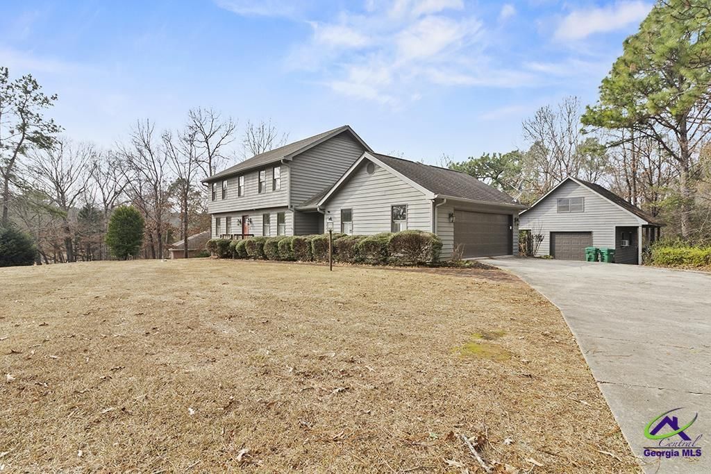 Over an acre in Warner Robins! 4-bedroom, 2.5-bath, 2-story home with detached wired, 2-story workshop that has a half bathroom. Inground pool with a deck off to the side. Home contains formal dining room, separate breakfast area, wood-burning fireplace, huge Great Room with bay windows overlooking wooded backyard, and screened porch. Kitchen has backsplash, pantry, stainless steel appliances, including refrigerator and double oven. Jetted tub, ceiling fans, gutters and separate Laundry Room. Cash or conventional loans.