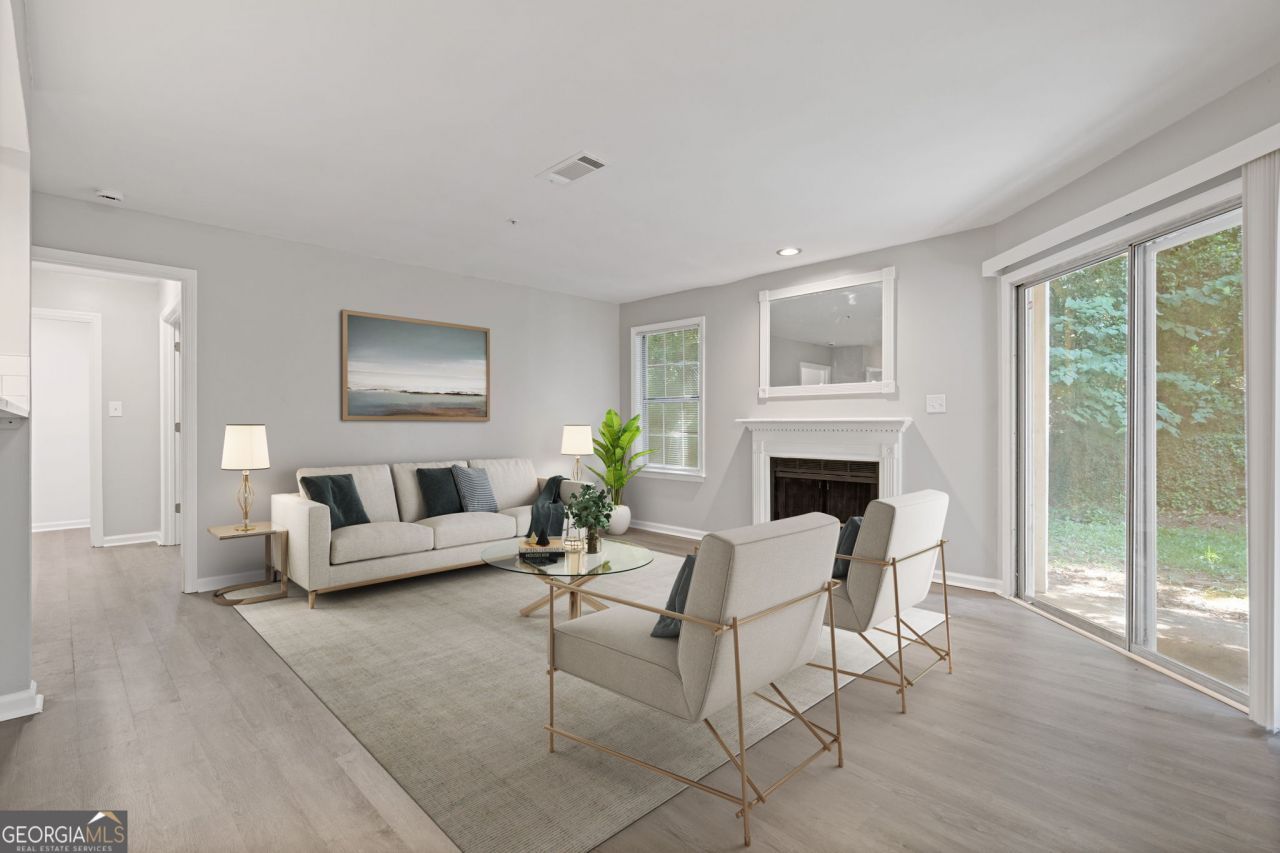 Beautifully remodeled one bedroom condominium on the main level. Walk into a large living room with sliding glass door access to your backyard. This open concept area has a partitioned dining space, bar seating, and a gas fireplace. The master has a walk-in closet and the one full bathroom has a tile shower/bath combo, NO carpet anywhere! A list of contractor updates include: fresh paint on the interior, all new outlets, new tile, ss appliances, all new kitchen, and new lighting fixtures. Make an appointment today and let's put your LAST name on this FRONT door!