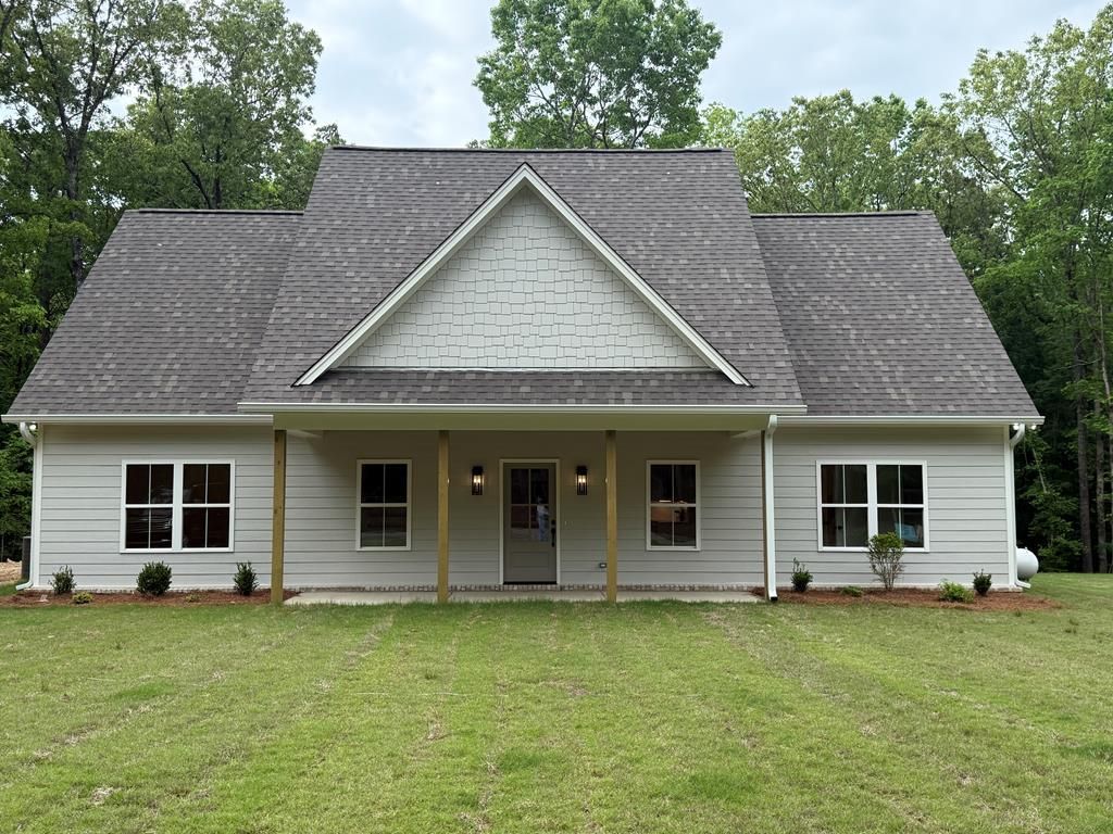 Beautiful new-construction 4 bed 3 bath home on 1.24 acres in Lafayette County. This split floor plan features a spacious living room with a soaring vaulted ceiling that joins the kitchen - complete with a large island, walk-in pantry with wood shelves, subway tiled backsplash behind the custom cabinetry & stainless steel appliance package. Thoughtful design details found throughout this home flow outside to the spacious front and back porches finished with stained beadboard ceilings. The primary suite overlooks the landscaped backyard and includes a spa-like retreat primary bathroom with double vanities, a separate soaking tub and fully tiled shower with frameless glass door, and a roomy walk-in closet. Two guest bedrooms share a convenient full bath downstairs, and you'll find the 4th bedroom with en suite bathroom upstairs. Enjoy peaceful living in a brand new home on the outskirts of Oxford. Best of both worlds. Complete April 2026