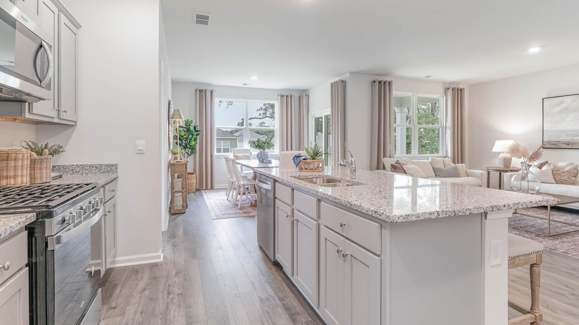 Ask about our RED TAGE EVENT! This appealing one-story home includes many contemporary features, and an open-concept design and 9' ceilings enhance the wonderful feel of this home. The kitchen includes a large island perfect for bar-style eating or entertaining, a pantry, and plenty of cabinets and counter space. The dining room and living room both overlook the covered porch, which is a great area for relaxing and dining al fresco. The large Bedroom One, located at the back of the home for privacy, can comfortably fit a king size bed, and includes an en suite bathroom with double vanity, walk-in closet, and separate linen closet. At the front of the home, two bedrooms share a second bathroom. The two-car garage connects to the front hallway where the laundry room is located. Pictures, photographs, colors, features, and sizes are for illustration purposes only and will vary from the homes as built.