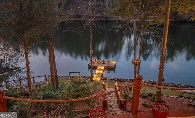 Welcome home to this beautiful oasis surrounded by the North GA mountains and panoramic view of a beautiful private lake shared in the Briar Cove community. Have you ever dreamt of owning an authentic log, mountain lodge? Well look no further! This five bedroom three full bath newly renovated and professionally designed home has every luxury one could hope for. The home boast five fireplaces, a spring fed pond with waterfall adjacent to the home, panoramic view from several multi level balconies and covered porches that wrap around the home, all while encompassing a fabulous outdoor kitchen with a stylish Viking built in grill, refrigerator, wide counters and storage cabinets. Enjoy gourmet dinners from the beautifully designed open concept kitchen with hand honed leather granite counter tops, high end appliances and a generous island to entertain and relax in this well appointed kitchen. Gaze up at the grand vaulted, tongue and groove ceiling and to the one of a kind, hand crafted stair rail. The beautiful loft overlooks the two story living room/kitchen area to which it invites warmth from all around. The terrace level offers another master suite and grand master bath with jetted soaking tub. Full entertaining/gaming area. Brand new seven person hot tub overlooking the lake. Once wander outdoors, follow the beautifully landscaped path to your private dock. Ample in size to sun bathe, fish, launch your kayak, pedal boat, canoe, paddle board, or simply dive in and float the pristine lake. This home is a gem, a true one of a kind. Family and friends would love spending time year around, relaxing at your tranquil home on the 10 acre private stocked lake. Short term rental is allowed. In the first year, home did over $100K in rental. This premier property would make not only a wonderful home, but an excellent vacation property investment as well! This home has so much to offer and will not last.